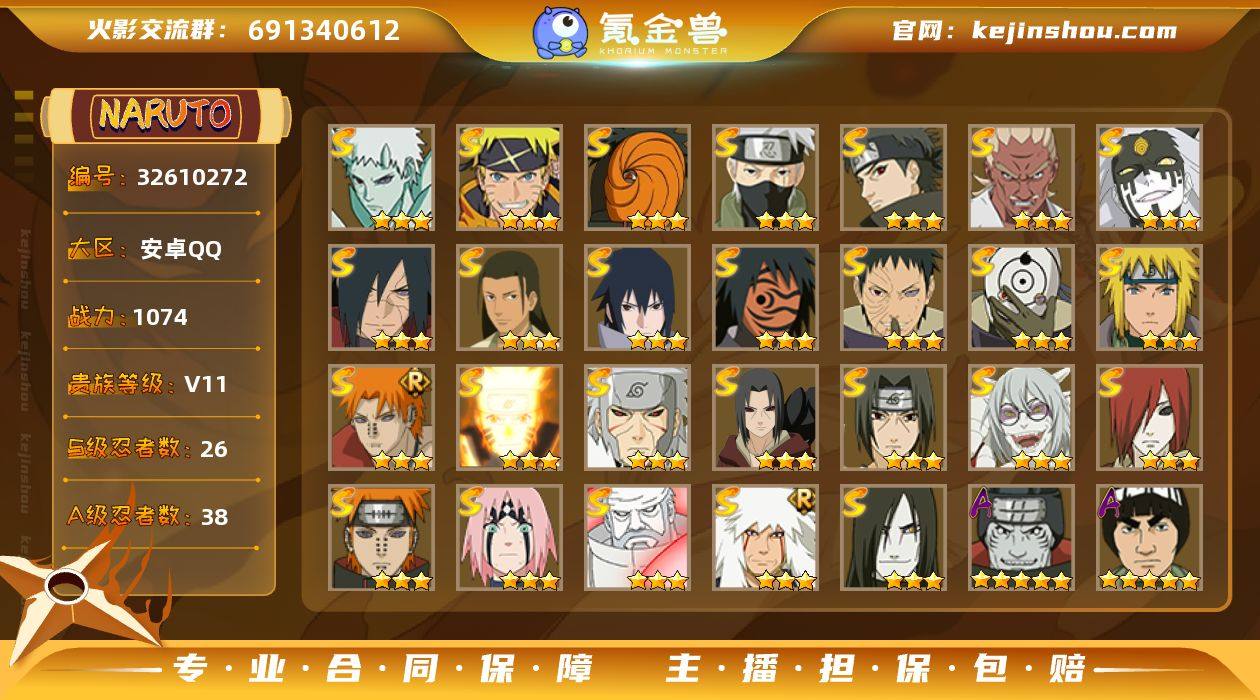 【HYYH1321】V11/战力1074W/S忍26/A忍38/三星S-宇智波带土「十尾人柱力」/二星A-飞段「死司凭血」/二星A-宇智波止水/三星S-旗木卡卡西「须佐能乎」/2星小南「神驹佑将」/二星A-照美冥「五代目水影」/三星A-蝎/五星A-迈特凯/三星A-日向宁次·忍界大战/二星A-奇拉比「忍界大战」/三星S-千手扉间「秽土转生」/三星S-千手柱间·木叶创立/三星S-药师兜「仙人模式」/三星S-大筒木桃式/二星A-长十郎「六代目水影」/二星A-春野樱「百豪」/三星S-宇智波斑「白面具」/二星A-黑土「四代目土影」/三星S-佩恩·天道「超」/二星A-迪达拉「秽土转生」/三星S-春野樱 「忍界大战」/二星A-宇智波佐助「万花筒写轮眼」/四星A-我爱罗「疾风传」/二星A-不缘/二星A-猿飞木叶丸「博人传」/二星A-大蛇丸「晓」/二星A-宇智波鼬/三星S-宇智波佐助「永恒万花筒」/三星S-大筒木金式「博人传」/三星S-宇智波鼬「秽土转生」/二星A-长门「青年」/三星S-宇智波带土 「忍界大战」/三星A-飞段/三星S-佩恩「天道」/二星A-桃地再不斩「漂泊武士」/三星S-漩涡鸣人·宇智波佐助/三星S-波风水门/三星S-漩涡鸣人 「九喇嘛连结」/二星A-秋道丁次「忍界大战」/二星A-漩涡博人「桃式显现」/二星A-李洛克「忍界大战」/二星A-波...