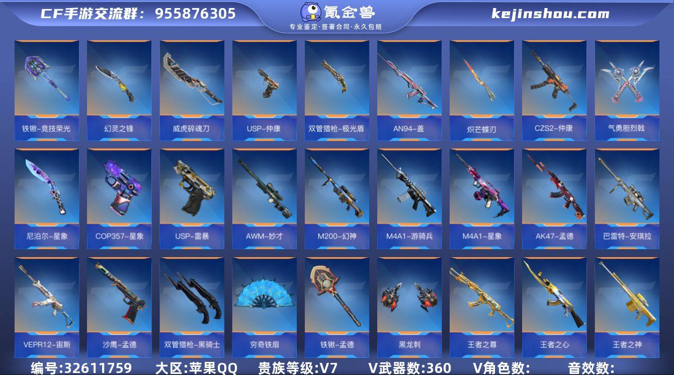 ✨爆破生化游龙!c4铁血枪魂!30王者武器 2王者雷套 冰皮M4雷霆王者+孟德+星象+烽火连城仲达+冰皮王影+多三国武器+宙斯套+6极光+3COP+7屠龙+5神罚+夏日灵狐x✨『360V-显血戒-VIP7-152级』 【王者武器】:/M4A1-雷霆王者-冰霜奇迹/王者之影-冰霜奇迹/王者之心/王者之尊/王者之神/王者之狱/王者之蝶/王者之魂/王者之电-冰霜奇迹/王者之击/王势雷套/王竞雷套/ 【热门武器】:/AK47-孟德/M4A1-星象/M4A1-仲达-烽火连城/M4A1-游骑兵/AWM-妙才/AN94-盖/巴雷特-安琪拉/M200-幻神/CZS2-仲康/VEPR12-宙斯/巴雷特-极光*6/ 【副武器】:/COP357-星象/COP357-A/COP357-冰川守护/沙鹰-孟德/双管猎枪-黑骑士/USP-仲康/USP-神罚*5/USP-雷暴/双管猎枪-极光盾/ 【近战】:/铁锹-孟德/尼泊尔-星象/气勇胆烈戟/威虎碎魂刀/穷奇铁扇/炽芒蝶刃/幻灵之锋/黑龙刺/铁锹-竞技荣光/屠龙*7/ 【角色】:/夏日灵狐-X/ 【套装】(套装仅含主武器手枪近战):/星象套/孟德套/妙才套/仲达套/宙斯套/仲康套/ 【其他】:/c4-铁血枪魂/3语音卡/8音效卡/7消灭音效/狙击枪线(江东骇虎)/ 截图展示段位不代表实际段位 如赛季更新等不可抗拒因素发生变化、时限道具不保证所剩时间