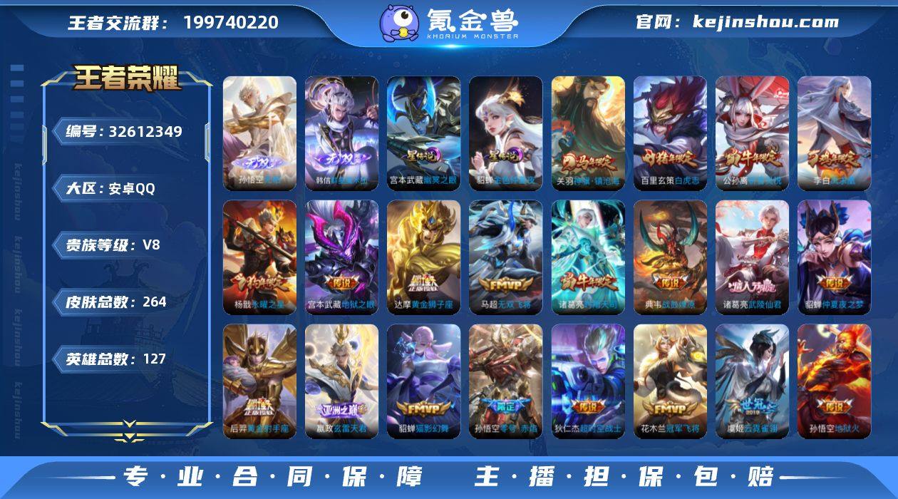 可换绑【精品特惠号·杨戬项羽金标·孙悟空韩信无双·关羽马限·诸葛亮公孙离牛限·零号赤焰·白虎志·永曜之星·武陵仙君·凤求凰·飞衡·冰封战神·项羽虞姬霸王别姬】幸运值247 3按键,2星传说,13王者印记,满级铭文,可二次CD18685,安卓Q-V8-264皮肤-2无双-22传说-78史诗【无双皮肤】:孙悟空无相,韩信群星魔术团【星元皮肤】:貂蝉金色仲夏夜,宫本武藏幽冥之眼【传说皮肤】:关羽神骥镇沧海,嬴政玄雷天君,典韦战鼓燎原,马超无双飞将,公孙离祈雪灵祝,诸葛亮时雨天司,铠绛天战甲,虞姬启明星使,孙悟空零号赤焰,貂蝉猫影幻舞,虞姬云霓雀翎,达摩黄金狮子座,百里玄策白虎志,花木兰冠军飞将,后羿黄金射手座,杨戬永曜之星,诸葛亮武陵仙君,貂蝉仲夏夜之梦,李白凤求凰,宫本武藏地狱之眼,孙悟空地狱火,狄仁杰超时空战士【限定皮肤】:白起狰,狄仁杰阴阳师,虞姬凯尔特女王,赵云皇家上将,嬴政优雅恋人,鲁班七号狮舞东方,扁鹊炼金王,芈月重明,芈月白晶晶,吕布御风骁将,周瑜赤莲之焰,元歌云间偶戏,夏侯惇朔风刀,甄姬游园惊梦,曹操烛龙,典韦穷奇,典韦蓝屏警告,马可波罗暗影游猎,狄仁杰魔术师,狄仁杰万华元夜,达摩星际陆战队,达摩沙漠行僧,项羽海滩派...