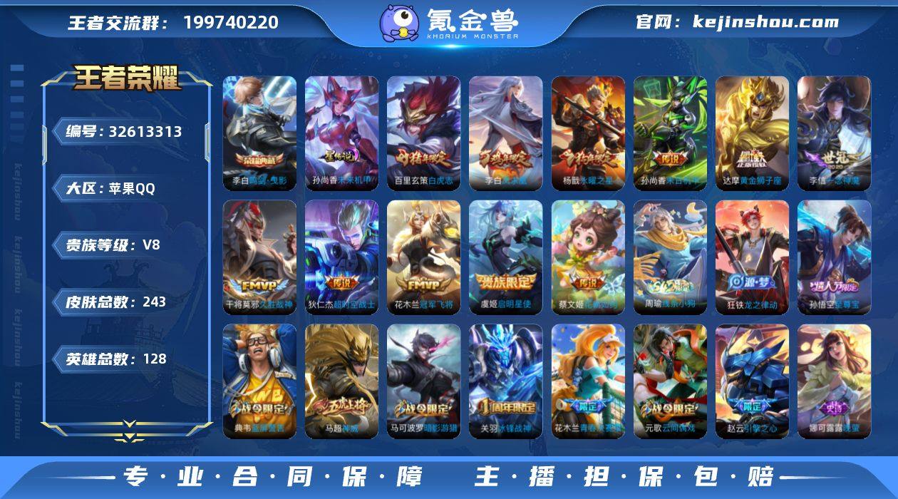 H-UX10938 苹果QQ V8 243皮 2典藏11传说75限定 1星元 巅峰1317 打野27段 对抗路24段 全能高手 金标苍/达摩/伽罗 215英雄碎片 139蔷薇之心 17印记 3荣耀印记 营地号:217165995【荣耀典藏】鸣剑·曳影,武则天, 【星元皮肤】未来机甲, 【热门限定】凤求凰,至尊宝,白虎志,神威,冰锋战神,永曜之星,天狼狩猎者,逐梦之翼,引擎之心,青春决赛季,霸王别姬男,霸王别姬女,暗影游猎,狮心王,启明星使, 【限定传说】猫狗日记男,久胜战神,一念神魔,猫狗日记女,蓝屏警告,暗夜猫娘,修罗,冠军飞将,梁祝,未来纪元,神迹守卫,黄金狮子座,黄金分割率,超时空战士,晚萤,花朝如约,千年之狐,末日机甲男,末日机甲女,无限星赏官,原初探秘者,原初追逐者,黎明之约,暗隐猎兽者,水晶猎龙者,金属风暴,特工魅影,曙光守护者,圣诞恋歌,嘻哈天王,逐浪之夏,功夫厨神,心灵骇客,狮舞东方,幽灵船长,乘风破浪,圣诞狂欢,星夜王子,节奏热浪,偶像歌手,街头霸王,箭羽风息,无畏之灵·狰,摇滚巨星,缤纷独角兽,星空之诺,朔望之晖,德古拉伯爵,赤莲之焰,银河之约,猎兽之王,云间偶戏,死神来了,冰冠公主,狂想玩偶喵,单词大作战,花好人间,蜃楼王,妖精王,炼金王,凯尔特女王,饕餮,烛龙,重明,穷奇,御狮,御霄,御旌,御銮,朔风刀,混沌棋,疑决...