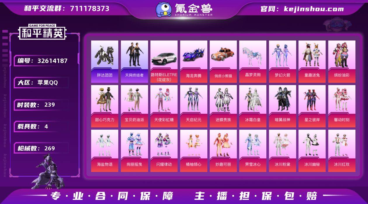 【938750】【公主号!天网 新101 巧克力 猪妹 3级M4超新星 番茄 猫鞋 胖达 哥特 国宝头 粉熊包】YXc27005-【可二次】【因赛季更新游戏段付以上号为准!】 苹果Q-2稀有5载具31粉装8特效枪32热门239套装269枪皮 15印记 历史超级王牌13星 【2稀有】 浪漫天命 天网终结者 【5载具】 路特斯EL灰色 海龙奔腾 晶梦灵驹 俏皮小熊猫 萌兔起飞僚机 【31粉装】 梦幻火箭 天启纪元 宝贝奶油派 天使彩虹糖 甜心巧克力 千金淑猫 荧海星豚 樱桃泡泡 炫光之旅 戏水时光 闲梦青缨 晶梦幻蝶 妙趣可丽 缤纷油彩 橘柚倾心 闪耀律动 绚丽摇曳 纯珍童话 冰川幽秘 迷蝶贵族 童趣迷兔 冰霜白皇 霁雪冰心 暗翼战神 星之彼岸 馨动时刻 海螺星光 冰川粉黛 冰川红玫 海盐物语 寒光使者 【8特效枪】 M416-超新星 (3级) UMP45-雪国精灵 (7级) Kar98K-巳巳如意 (1级) AWM-橘柚倾心 (5级) 蜜獾-荧海星豚 (1级) Mk14-樱桃泡泡 (5级) AKM-梦之光华 (7级) DP-28-幻梦音符 (7级) 【32热门】 小丑鱼 奇迹天团 龟仙人 2P战斗服款 红熊茄茄 青涩年华 幸运萌趣趣 雪山精英 潮萌小黄鸭 晶辉守护 糯粉咩咩 鹰眼刺客 兔兔白日梦 恶魔喵喵 奇迹天团 激萌罗小黑 迅捷狂鲨 胖达团团 暗影哥特 粉红小猪 豚鼠丹丹 狂沙舞...