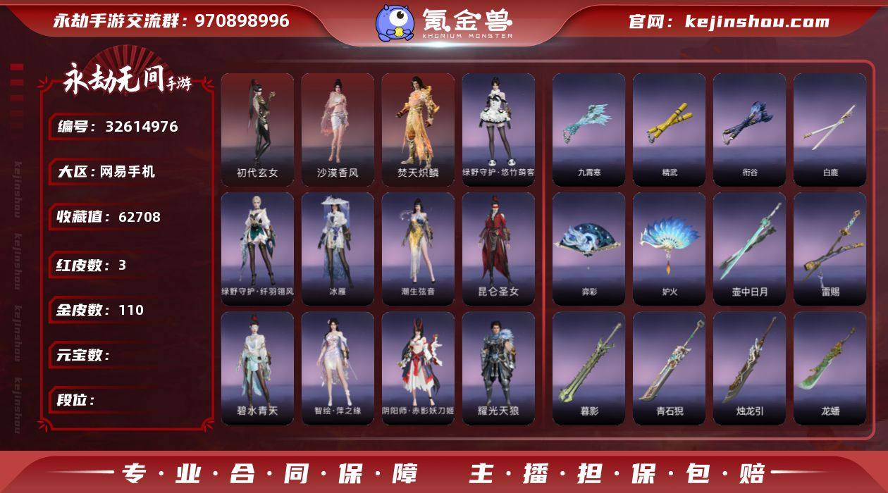 0AL45W网易手机3个红皮,初代玄女(宁红夜),沙漠香风(迦南),焚天炽鳞(季沧海),下次换绑时间2025/12/8,等待换绑期间可以登入网易大神直接进入游戏不影响游戏体验。网易支付未实名,道具货币都是默认已使用.