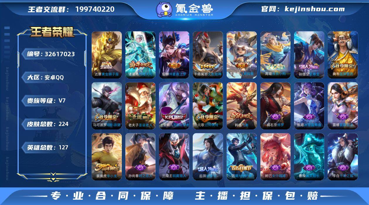 星元金色仲夏夜 安卓Q-V7-最强王者段位-127英雄-224皮肤-5传说-64史诗 【传说皮肤】:李元芳飞鸢探春,诸葛亮时雨天司,干将莫邪久胜战神,达摩黄金狮子座,貂蝉仲夏夜之梦 【限定皮肤】:白起狰,狄仁杰阴阳师,赵云皇家上将,嬴政优雅恋人,嬴政白昼王子,鲁班七号狮舞东方,庄周高山流水,高渐离死亡摇滚,阿轲迷踪丽影,钟无艳王者之锤,芈月重明,吕布猎兽之王,周瑜赤莲之焰,元歌云间偶戏,夏侯惇朔风刀,曹操烛龙,典韦穷奇,典韦蓝屏警告,马可波罗暗影游猎,狄仁杰魔术师,狄仁杰万华元夜,达摩星际陆战队,达摩沙漠行僧,项羽海滩派对,老夫子圣诞老人,老夫子醍醐杖,程咬金演武夺筹,刘邦夺宝奇兵,韩信飞衡,兰陵王驯魔猎人,兰陵王金庭之子,亚瑟潮玩骑士王,孙悟空至尊宝,牛魔御旌,后羿如梦令,李元芳银河之约,李元芳云中旅人,钟馗神迹守卫,钟馗驱傩正仪,杨玉环遇见飞天,女娲朔望之晖,雅典娜单词大作战,雅典娜黎明之约,蔡文姬繁星吟游,太乙真人饕餮,太乙真人华丽摇滚,鬼谷子原初探秘者,诸葛亮时雨天司,苏烈千军破阵,百里玄策原初追逐者,弈星混沌棋,沈梦溪星空之诺,沈梦溪大漠名商,明世隐疑决卦,裴擒虎李小龙,狂铁御狮,米莱狄御霄,米...