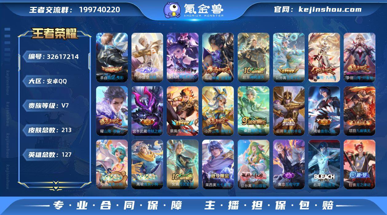 【Hwz906】【特价出售】安卓Q-V7-可二次-1天幕-127英雄-213皮肤-1典藏皮肤-1无双-1珍品传说-12传说-64史诗(鸣剑曳影、无相、神骥逐星野、愿照九州拓、山海苍雷引、山海炽霜斩、至尊宝) 【英雄全皮】:敖隐全皮 【荣耀典藏】:李白鸣剑曳影 【无双皮肤】:孙悟空无相 【珍品传说】:安琪拉酷洛米之心 【传说皮肤】:马超神骥逐星野,后羿神树通天,公孙离云诺千山,澜愿照九州拓,裴擒虎祥瑞亨通,桑启鸣野蒿,小乔山海琳琅生,曜山海苍雷引,李信山海炽霜斩,周瑜音你心动,后羿黄金射手座,宫本武藏地狱之眼 【限定皮肤】:姜子牙天穹之誓,狄仁杰阴阳师,小乔山海琳琅生,赵云皇家上将,孙尚香蔷薇恋人,元歌无心,马可波罗山海玄木吟,狄仁杰魔术师,狄仁杰万华元夜,达摩星际陆战队,达摩沙漠行僧,项羽海滩派对,老夫子醍醐杖,韩信傲雪梅枪,兰陵王金庭之子,孙悟空至尊宝,孙悟空孙行者,李元芳云中旅人,钟馗驱傩正仪,鬼谷子原初探秘者,鬼谷子五谷丰年,百里玄策原初追逐者,弈星混沌棋,沈梦溪大漠名商,明世隐疑决卦,裴擒虎李小龙,裴擒虎擒涛扼浪,云中君纤云弄巧,李信山海炽霜斩,曜山海苍雷引,鲁班大师探海日志,桑启海盐诗旅,阿古朵江河有灵,张良古海...