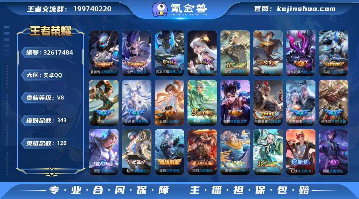 W15317,,,可立即换绑无需挂单养号,,铭文满级,,典藏2,,传说15,,星传说2,,按键8,,,夺宝73,,安卓Q-V8-最强王者段位-128英雄-343皮肤-2典藏皮肤-15传说-127史诗 【英雄全皮】:刘邦全皮,孙权全皮,敖隐全皮,空空儿全皮,影全皮 【荣耀典藏】:夏侯惇无限飓风号,小乔天鹅之梦 【传说皮肤】:后羿神树通天,云缨幻光神枪,桑启鸣野蒿,干将莫邪画中仙,项羽无限倾心,马超无双飞将,女娲补天,孙尚香异界灵契,赵云淬星耀世,曜李逍遥 ,虞姬启明星使,孙悟空零号赤焰,干将莫邪久胜战神,貂蝉仲夏夜之梦,宫本武藏地狱之眼 【限定皮肤】:蒙犽顽岩魄,蔡文姬夏日便利店,大乔绒语心约,虞姬夏日便利店,姜子牙天穹之誓,杨戬破阵退雄兵,李白谪仙醉月,狄仁杰阴阳师,赵云皇家上将,墨子神迹守卫,孙尚香蔷薇恋人,孙尚香异界灵契,鲁班七号狮舞东方,庄周高山流水,阿轲迷踪丽影,钟无艳超时空战士,扁鹊奇幻香踪,吕布御风骁将,周瑜赤莲之焰,元歌云间偶戏,元歌无心,夏侯惇朔风刀,甄姬游园惊梦,甄姬落雪兰心,曹操天狼征服者,典韦蓝屏警告,典韦岱宗,马可波罗暗影游猎,狄仁杰魔术师,狄仁杰万华元夜,达摩沙漠行僧,项羽海滩派对,项羽无限倾心,老...