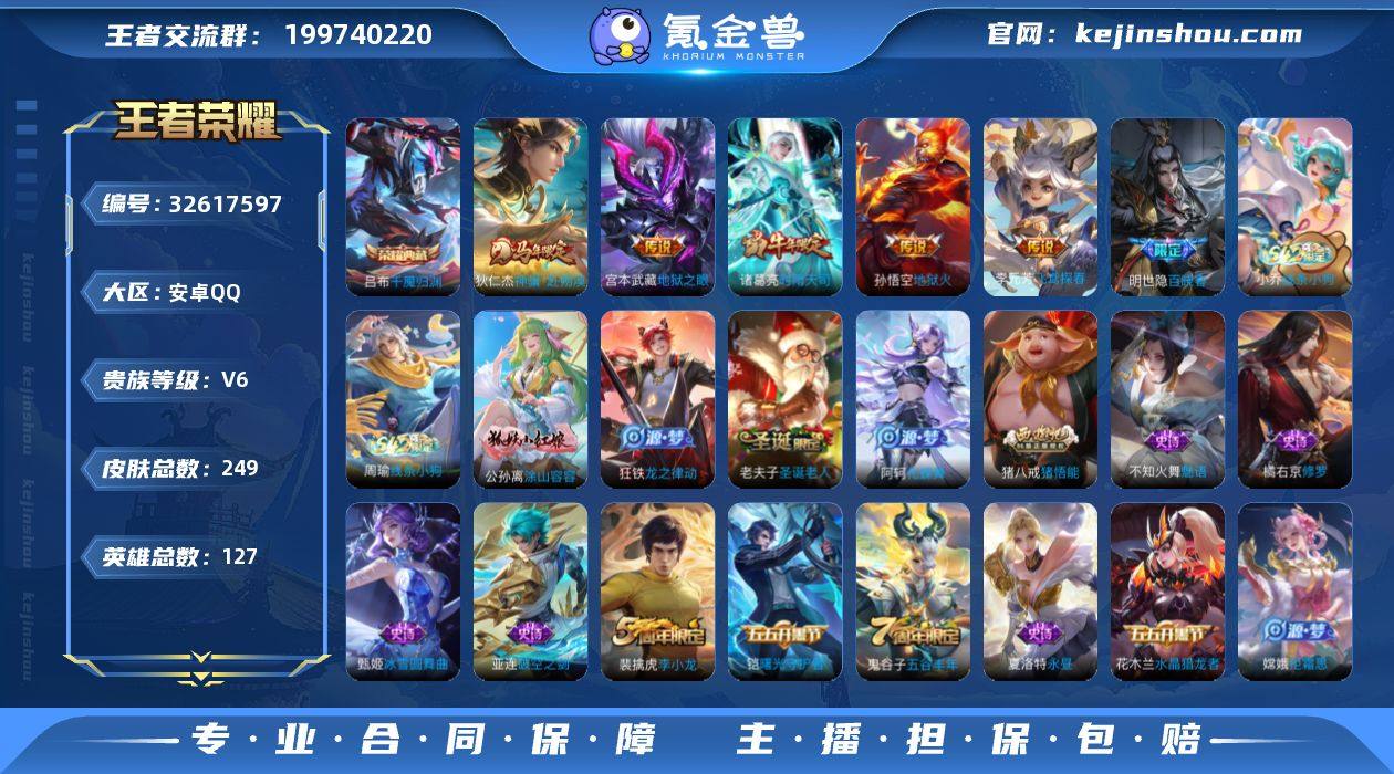 编号99464 可二次 v6 249皮肤 1典藏 5传说 千魇归渊 时雨天司 神骥·赴朔漠 圣诞老人 飞鸢探春 地狱火 地狱之眼 逐浪之夏 女武神 蔷薇恋人 冰冠公主 街头霸王 李小龙 特工魅影 猫狗日记(男) 曙光守护者 修罗 水晶猎龙者