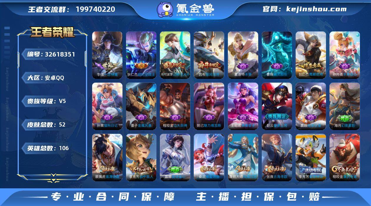 【WZ181687】安卓Q-V4-荣耀黄金I段位-106英雄-52皮肤-2传说-13史诗【传说皮肤】:李信一念神魔,狄仁杰超时空战士【限定皮肤】:狄仁杰阴阳师,赵云皇家上将,吕布御风骁将,马可波罗山海玄木吟,狄仁杰万华元夜,项羽海滩派对,程咬金演武夺筹,李元芳云中旅人,钟馗驱傩正仪,沈梦溪大漠名商,裴擒虎擒涛扼浪,鲁班大师探海日志,桑启海盐诗旅,张良古海寻踪【年限皮肤】:吕布御风骁将,马可波罗山海玄木吟【赛季限定】:狄仁杰万华元夜,程咬金演武夺筹,钟馗驱傩正仪,沈梦溪大漠名商,李元芳云中旅人,桑启海盐诗旅,裴擒虎擒涛扼浪,鲁班大师探海日志,张良古海寻踪【史诗皮肤】:马可波罗山海玄木吟,夏洛特永昼,吕布御风骁将,狄仁杰鹰眼统帅,孙策猫狗日记,程咬金功夫厨神,曹操幽灵船长,墨子金属风暴,妲己魅力维加斯,嬴政摇滚巨星,孙尚香水果甜心,王昭君偶像歌手,赵云皇家上将【其他皮肤】:张良古海寻踪,李元芳妄想特派,鲁班大师探海日志,莱西奥西部游侠,太乙真人劲辣红锅,裴擒虎擒涛扼浪,赵怀真太极少年,猪八戒潮玩探月行,海月幻泉雾影,桑启海盐诗旅,李元芳云中旅人,沈梦溪大漠名商,鲁班大师乓乓大师,钟馗驱傩正仪,程咬金演武夺筹,露娜瓷...