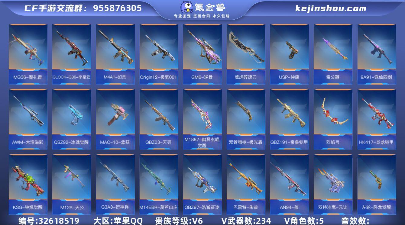实名: 可修改 贵族等级: V6 v武器: MK47-云舞,81式-光明之神,M4A1-冰锋觉醒,M4A1-海骑士,AK47-血武士,MK47-仁德,M4A1-机械迷城,AK47-燎天净火,AK47-幸运日觉醒,M4A1-雷霆,M14EBR-天神,QBZ19-天使,AUG-机械纪元,M4A1-仲达,M4A1-龙血,AK47-奉先,剑齿虎-炫彩,QBZ03-湮灭,AK12-天启,M4A1-天使,AK47-黑武士觉醒,M4A1-死神,M4A1-黑骑士,AK47-无影,M4A1-雷神,AK47-火麒麟,98K-血月,M200-心动次元觉醒,M200-幻神,98K-黑骑士,AWM-妙才,AWM-裁决,09式狙-天神,巴雷特-极光,巴雷特-毁灭,AWM-天龙,加特林-蟒蛇,加特林-炼狱,CZS2-心动次元觉醒,MK5-机械纪元,双持斯泰尔-天使,汤姆逊-烈龙,地狱火,QSZ92-天使,双持柯尔特-极光,沙鹰-无影,USP-神罚,沙鹰-修罗,蝴蝶刀-极光,M4A1-运输船,M4A1-心动次元觉醒,M4A1-破空冰刃,QBZ03-死神,AK47-黑鲨,QBZ03-金色蔷薇,SCAR-幽暗骑士,AWM-天使,刘易斯-天使,加特林-堡垒,USP-机械迷城,丛林匕首-庆龙觉醒,TAC-晴舞,M4A1-堕天神,KSG-极光,QCW05-变形金刚·大黄蜂,98K-星神,PP19野牛-造纸术,SCAR-探星者,M4A1-猎神,雌雄双股剑,沙鹰-神兵修罗,虎贲钩镰刀,SCAR-印刷术,M14EBR-拂影,KSG-孟获,SCAR Light-白虎,M4A1-太白诗仙,USP-太白诗仙,HK416-极光,9A91-魔蜥觉醒...