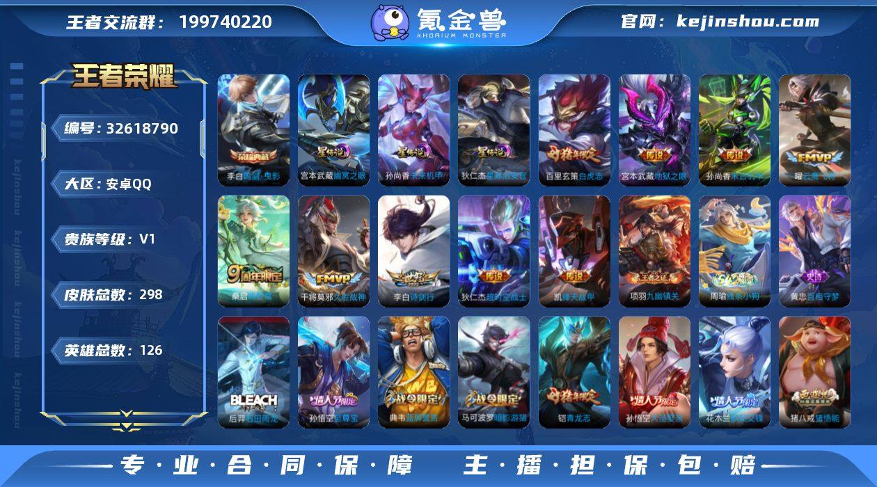 【W6307】【打野32段号-3k星币】营地ID:94061679【爆款臻稀皮肤:鸣剑·曳影-白虎志-至尊宝-蓝屏警告-默契交锋-诗剑行-孙尚香末日机甲-久胜战神-飞衡-青龙志-绛天战甲-云鹰飞将-超时空战士-鸣野蒿】安卓q-可二次-贵7-126英雄-298皮肤-1典藏-3星元-9传说-3按键-贵族积分4.2w 【星元皮肤】:宫本武藏幽冥之眼,狄仁杰星际治安官,孙尚香未来机甲