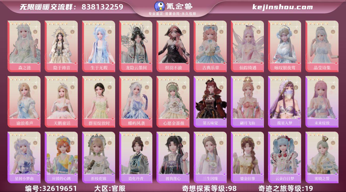 飞鸟套满进,仙女圣母两进,八音盒一进,蝴蝶套一进,神女套一进,圣女一进,开服玩家,资源满满