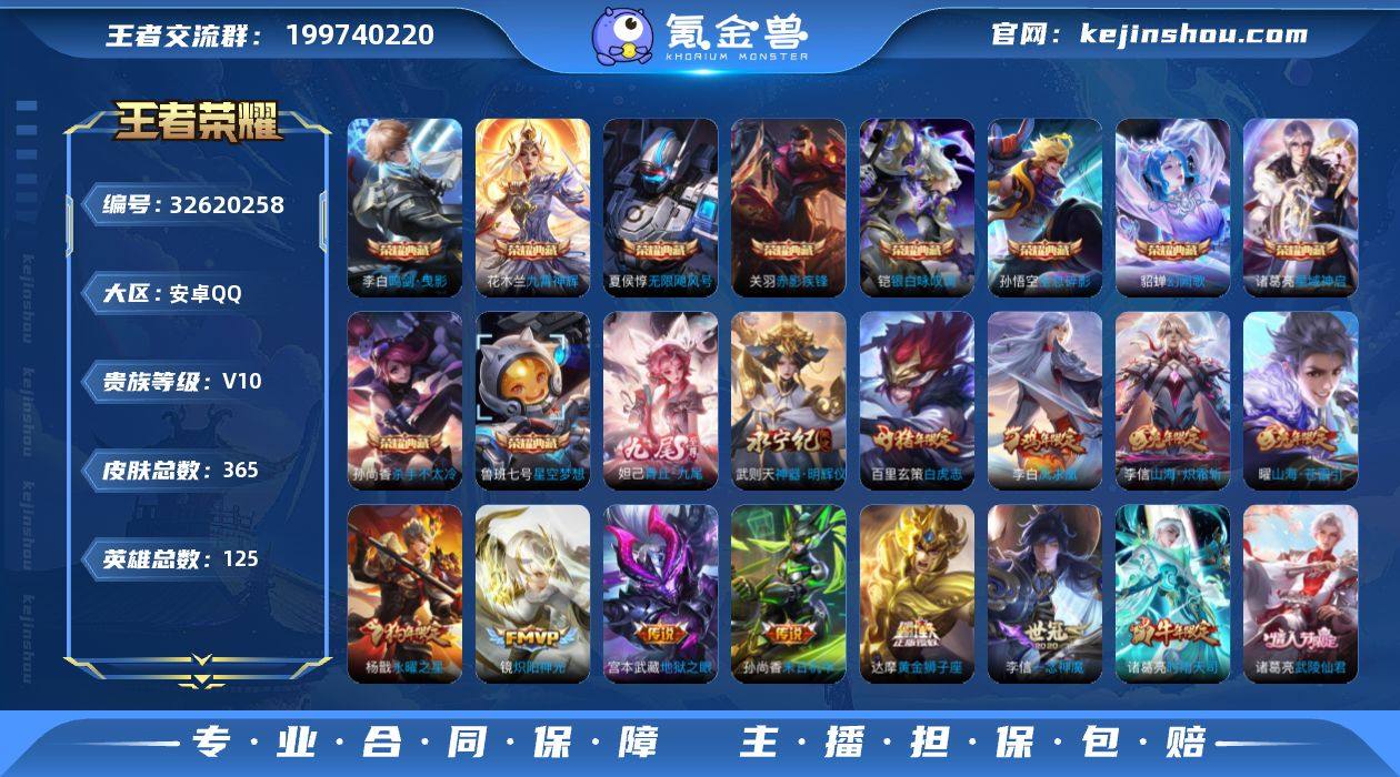 安卓Q-V10-尊贵铂金II段位-124英雄-365皮肤-10典藏皮肤-1典藏英雄-2无双-36传说-104史诗 【英雄全皮】:娜可露露全皮,橘右京全皮,盾山全皮,鲁班大师全皮 【荣耀典藏】:武则天英雄,孙悟空全息碎影,夏侯惇无限飓风号,孙尚香杀手不太冷,鲁班七号星空梦想,李白鸣剑曳影,诸葛亮星域神启,花木兰九霄神辉,关羽赤影疾锋,铠银白咏叹调,貂蝉幻阙歌 【无双皮肤】:妲己青丘九尾,武则天神器明辉仪 【传说皮肤】:桑启鸣野蒿,艾琳觅芳踪,干将莫邪画中仙,伽罗炽翼辉光,孙悟空齐天大圣,小乔山海琳琅生,曜山海苍雷引,李信山海炽霜斩,李白诗剑行,不知火舞绯月行,橘右京枫霜尽,娜可露露前尘镜,赵云淬星耀世,李元芳飞鸢探春,诸葛亮时雨天司,镜炽阳神光,虞姬启明星使,曜云鹰飞将,李信一念神魔,刘备时之恋人,貂蝉猫影幻舞,干将莫邪久胜战神,虞姬云霓雀翎,达摩黄金狮子座,百里玄策白虎志,花木兰冠军飞将,梦奇胖达荣荣,后羿黄金射手座,杨戬永曜之星,诸葛亮武陵仙君,貂蝉仲夏夜之梦,李白凤求凰,孙尚香末日机甲,宫本武藏地狱之眼,孙悟空地狱火,狄仁杰超时空战士 【限定皮肤】:白起狰,狄仁杰阴阳师,虞姬凯尔特女王,小乔山海琳琅生,赵云皇家上将...