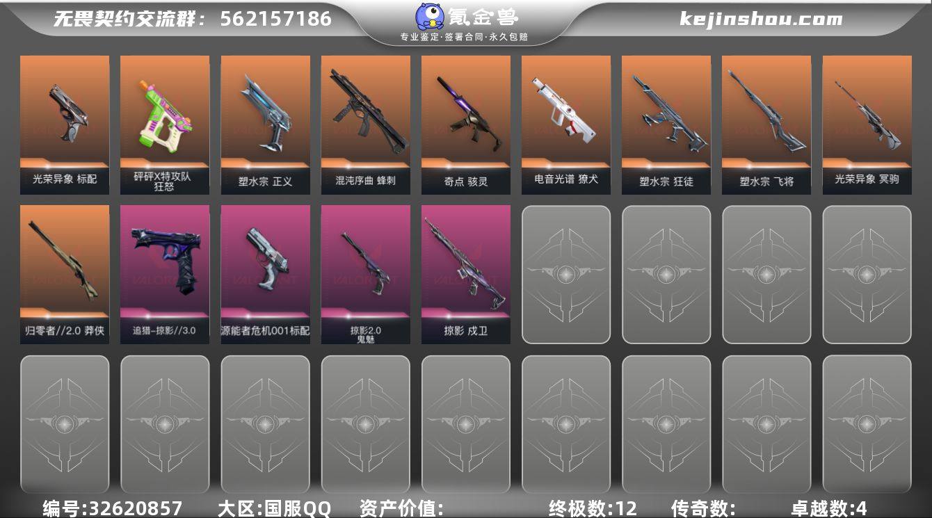 【qyz9596】包人脸玩够可回血 黑波之刃塑水狂徒 qyz9596 【近战武器】:近战武器-碎心裂刃,近战武器-黑波之刃 【狂徒】:狂徒-塑水宗 【戍卫】:戍卫-掠影 【獠犬】:獠犬-电音光谱,獠犬-电音光谱 【冥驹】:冥驹-光荣异象 【飞将】:飞将-塑水宗 【莽侠】:莽侠-归零者//2.0 【骇灵】:骇灵-奇点 【蜂刺】:蜂刺-混沌序曲 【追猎】:追猎-掠影//3.0 【标配】:标配-光荣异象,标配-源能者危机001 【正义】:正义-塑水宗 【鬼魅】:鬼魅-掠影//2.0 【狂怒】:狂怒-砰砰X特攻队 【卡面】:热舞环节 卡面,树懒大作战 卡面,Clutch 卡面,无畏契约GO!第一卷:芮娜 卡面,无畏契约GO!第一卷:零 卡面,无垠星环 卡面,《双城之战》金克丝 卡面,别冒尖 卡面,代号红色 卡面,新兵报到 卡面,V契约 卡面,无畏契约 卡面 【喷漆】:买装还是存钱 喷漆,关门放狗 喷漆,酷熊冲浪 喷漆,无畏契约GO!第一卷:芮娜 喷漆,红鳞 喷漆,无畏契约GO!第一卷:零 喷漆,无畏契约GO!第一卷:捷风 喷漆,松叶 喷漆,无畏契约GO!第一卷:奇乐 喷漆,放下武器 喷漆,胜利属于无畏契约 喷漆,GLHF 喷漆,无畏契约 喷漆 【挂饰】:无畏契约GO!第一卷 芮娜 挂饰,无畏契约GO!第一卷 零...
