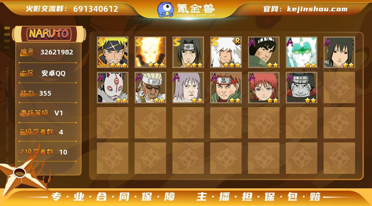 【HYF2674】V1/战力355W/S忍4/A忍10/三星S-自来也「舞之豪杰」/2星小南「神驹佑将」/二星A-蝎/三星S-漩涡鸣人·宇智波佐助/三星S-漩涡鸣人 「九喇嘛连结」/二星A-宇智波泉奈/二星A-秋道丁次「忍界大战」/二星A-巳月「仙人模式」/二星A-干柿鬼鲛/二星A-奇拉比「忍界大战」/二星A-迈特凯「青春爆炸」/二星A-神秘面具男 「忍者之路」/二星A-千代「近松十人卫」/三星S-宇智波鼬 「须佐能乎」