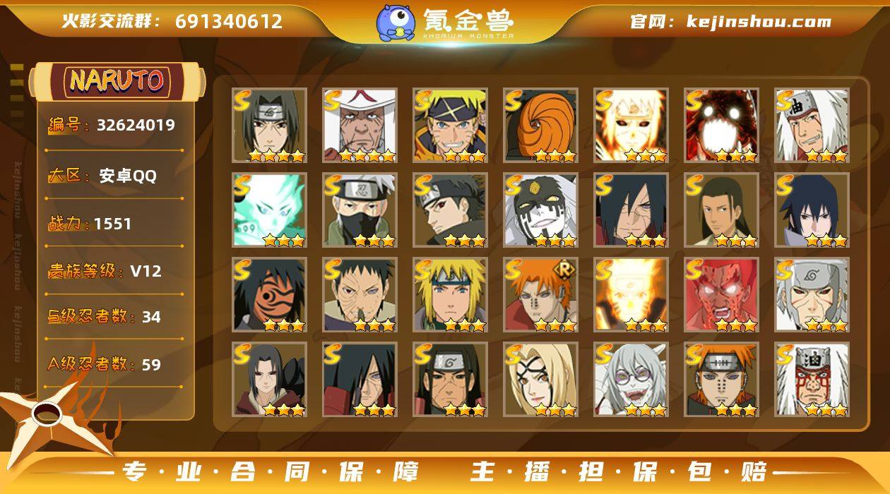 【HYF2680】V12/战力1551W/S忍34/A忍59/三星S-宇智波斑「秽土转生」/三星S-纲手「百豪」/二星A-纲手「侠隐江湖」/三星S-纲手/二星A-照美冥「夏日泳装」/三星S-波风水门「九喇嘛连结」/二星A-达鲁伊「五代目雷影」/二星A-飞段「死司凭血」/二星A-宇智波止水/五星A-猿飞阿斯玛/三星S-旗木卡卡西「须佐能乎」/二星A-猿飞日斩「火影继承人」/2星小南「神驹佑将」/二星A-我爱罗 「新春限定」/二星A-照美冥「五代目水影」/五星A-迈特凯/二星A-奇拉比「忍界大战」/三星S-千手扉间「秽土转生」/三星S-千手柱间·木叶创立/二星A-神秘面具男 「忍者之路」/2星旗木卡卡西「神威对决」/三星S-药师兜「仙人模式」/三星S-大筒木桃式/二星A-长十郎「六代目水影」/二星A-蝎「绯流琥」/三星S-漩涡鸣人 「暴怒·第六尾」/二星A-桃地再不斩「秽土转生」/二星A-春野樱「百豪」/三星S-迈特凯「死门」/三星S-自来也 「传说中的三忍」/二星A-佩恩·六道「漂泊浪客」/二星A-黑土「四代目土影」/三星S-佩恩·天道「超」/二星A-药师兜「半蛇斗篷」/二星A-纲手「妖怪奇谭」/二星A-神农 「羁绊」/三星S-春野樱 「忍界大战」/二星A-宇智波佐助「万花筒写轮眼」/二星A-我爱罗「忍界大战」/二星A-迪达拉/四星A-我...