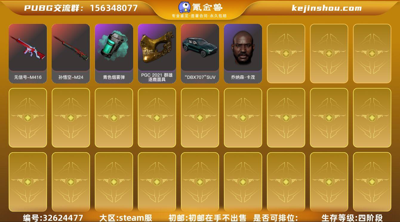 段位:铂金 生存等级:五阶段 卖家说:喜欢来来看