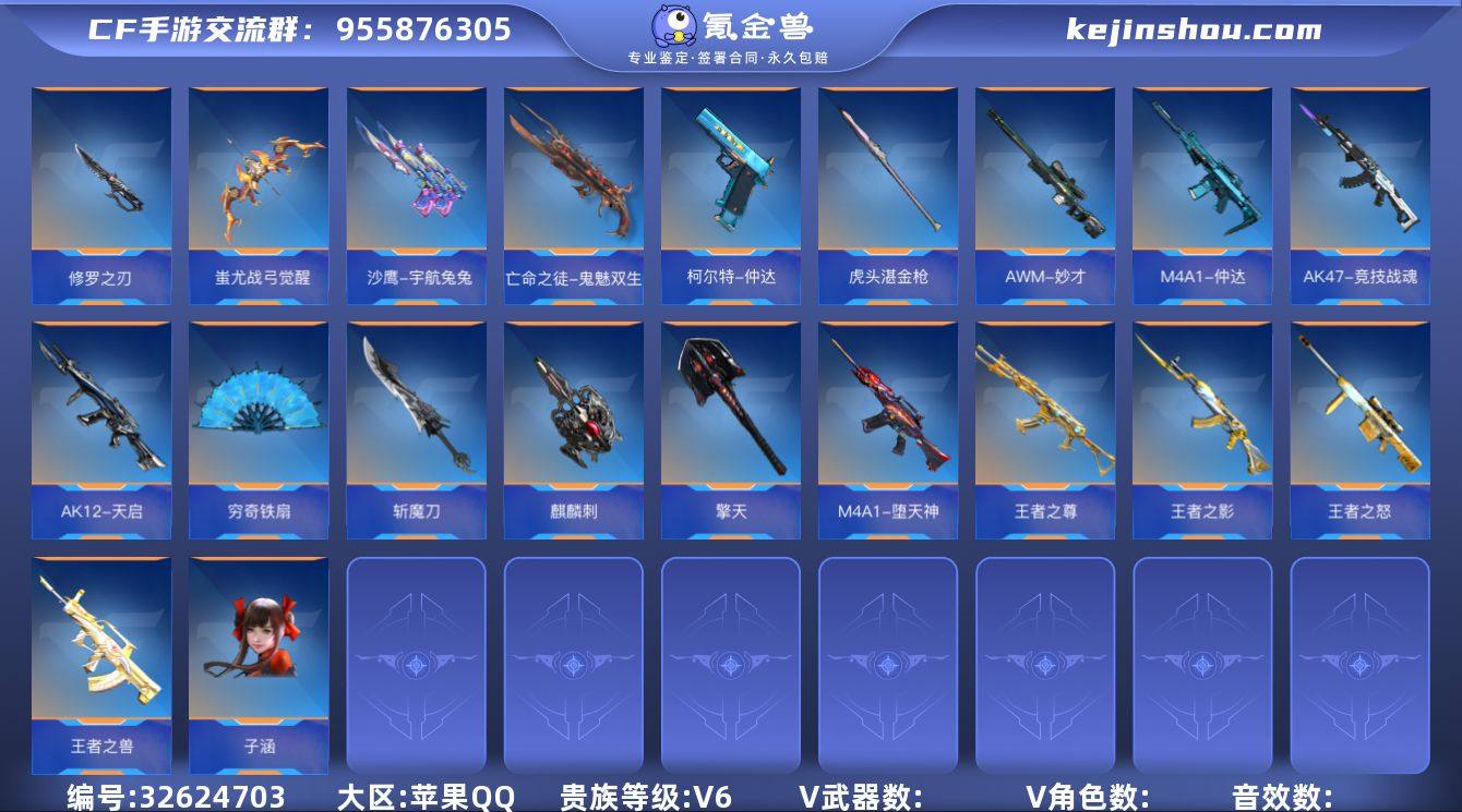 ✨小极品爆破!挑战可爽刷!王怒 王影 仲达套(主武器现代战场音效卡)妙才+子涵 2神罚 2黑骑士1白虎 生化55%挑战12%伤害戒✨『170V-显血戒-VIP6-135级』 【王者武器】:/王者之怒/王者之影/王者之尊/王者之兽 【热门武器】:/M4A1-仲达/AWM-妙才/亡命之徒-鬼魅双生/AK47-竞技战魂/M4A1-堕天神/AK12-天启/ 【副武器】:/柯尔特-仲达/USP-神罚*2/沙鹰-宇航兔兔/蚩尤战弓觉醒/MK23-湛蓝裂痕/ 【近战】:/穷奇铁扇/龙啸*3/麒麟刺/虎头湛金枪/修罗之刃/擎天/斩魔刀/ 【角色】:/子涵/ 【套装】(套装仅含主武器手枪近战):/仲达套/ 【其他】:/4音效卡(仲达-现代战场)/数字(鬼魅双生)/2消灭音效/