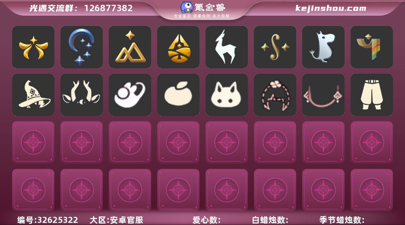 账号类型: 手机账号 季节已毕业: 欧若拉季,夜行季,拾光季,归巢季,九色鹿季,二重奏季,姆明季,彩染季 完成地图: 全图毕业 礼包: 巫师,九色鹿角,兔子鞋,橘子,兔子,四叶草,新年耳钉 裤子: 武士裤