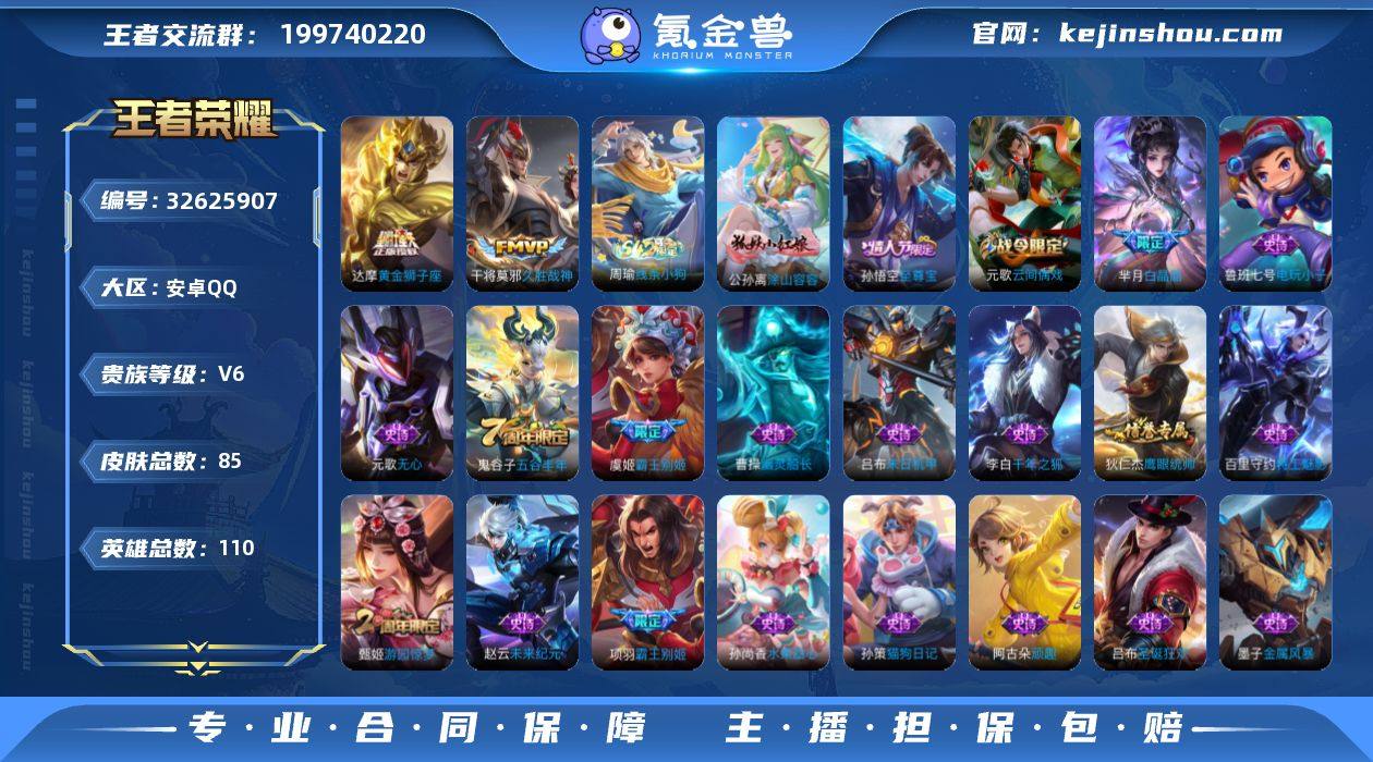 【YX1238】【至尊宝/霸王别姬/涂山容容】85皮肤2传说/久胜战神/黄金狮子座【限定皮肤】:狄仁杰阴阳师,赵云皇家上将,嬴政优雅恋人,芈月白晶晶,元歌云间偶戏,元歌无心,甄姬游园惊梦,狄仁杰魔术师,狄仁杰万华元夜,达摩沙漠行僧,项羽海滩派对,项羽霸王别姬,程咬金演武夺筹,兰陵王金庭之子,亚瑟潮玩骑士王,孙悟空至尊宝,李元芳云中旅人,虞姬霸王别姬,钟馗驱傩正仪,鬼谷子五谷丰年,沈梦溪大漠名商,鲁班大师探海日志,桑启海盐诗旅【赛季限定】:狄仁杰万华元夜,程咬金演武夺筹,钟馗驱傩正仪,达摩沙漠行僧,兰陵王金庭之子,沈梦溪大漠名商,李元芳云中旅人,桑启海盐诗旅,鲁班大师探海日志【战令限定】:元歌云间偶戏,亚瑟潮玩骑士王,周瑜线条小狗【史诗皮肤】:周瑜线条小狗,公孙离涂山容容,元歌无心,阿古朵顽趣,鬼谷子五谷丰年,钟馗乐园奇幻夜,芈月白晶晶,元歌云间偶戏,狄仁杰鹰眼统帅,孙策猫狗日记,蔡文姬舞动绿茵,百里守约特工魅影,雅典娜冰冠公主,甄姬游园惊梦,孙悟空至尊宝,虞姬霸王别姬,项羽霸王别姬,吕布末日机甲,李白千年之狐,曹操幽灵船长,吕布圣诞狂欢,墨子金属风暴,妲己魅力维加斯,嬴政优雅恋人,孙尚香水果甜心,...