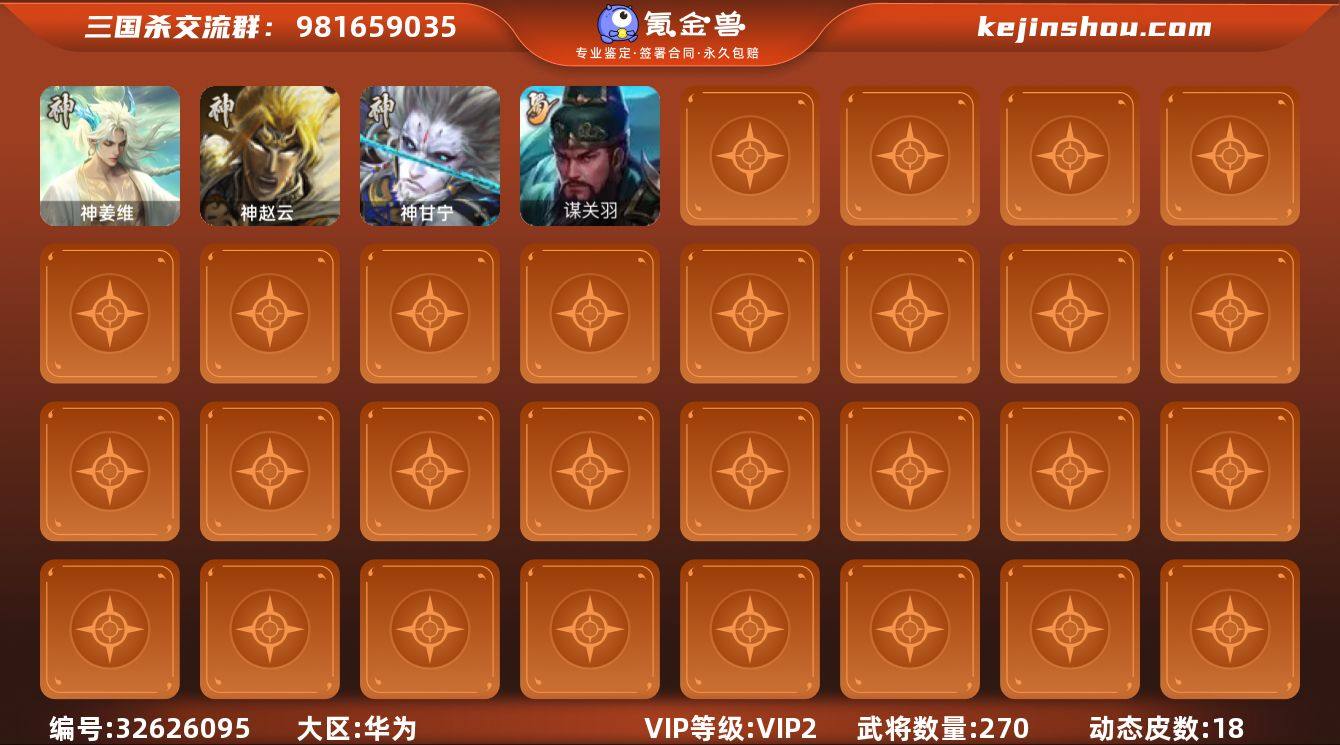 神姜维,某关羽加典藏皮肤,神甘加动皮,号上宝珠可以换势魏延或者势邓艾