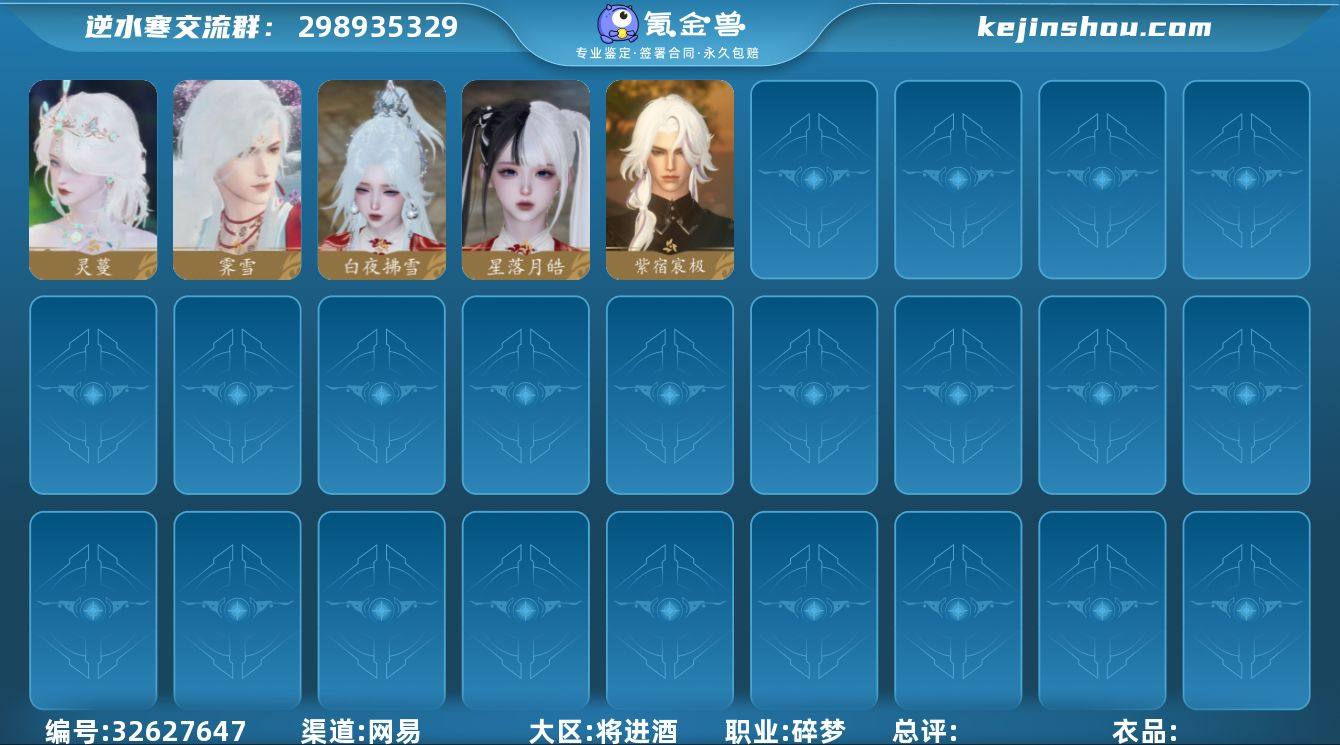 【4.22可换绑】【已用天赏石12】天霓染4, 天赏发型3, 副本外观3, 馆藏5级, 灵韵5, 11国色, 176585衣品, 88840国色值, 196套时装, 详情见图;副本外观:白夜拂雪*1, 紫宿宸极, 星落月皓;天赏外观:桃雪浪, 霁雪, 灵蔓,蝴蝶武器;武器环身:临渊一梦