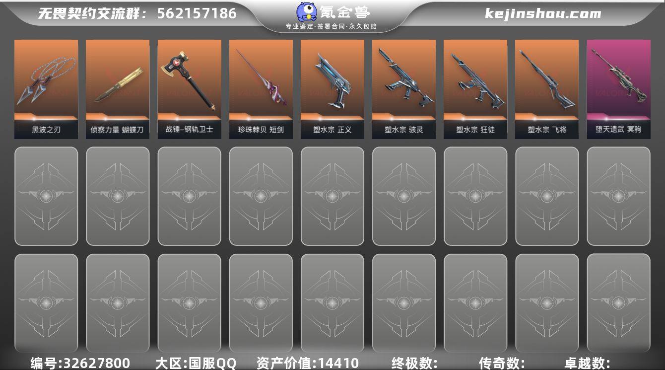 MWW618【英雄26 皮肤48 资产14410 塑水宗套 回火礼包套】【游戏等级】Lv108 【段位】 未定级 【R点】695 【皮肤总价值】14,410 【英雄数量】26 【皮肤数量】48 【挂饰数量】79 【卡面数量】83 【喷漆数量】90 【鬼魅】鬼魅-流星兵团 鬼魅-光导纤维 鬼魅-胡桃狂想 【近战武器】近战武器-珍珠棘贝短剑 近战武器-侦察力量蝴蝶刀 近战武器-钢轨卫士战锤 近战武器-黑波之刃 近战武器-沙尘幻旅匕首 【正义】正义-复古浪潮 正义-塑水宗 正义-沙尘幻旅 【短炮】短炮-好搭档 短炮-深海水族 短炮-钢轨卫士 【幻影】幻影-珍珠棘贝 幻影-战术小伙伴 【獠犬】獠犬-复古浪潮 獠犬-战术小伙伴 獠犬-胡桃狂想 【莽侠】莽侠-深海水族 【戍卫】戍卫-珍珠棘贝 戍卫-钢轨卫士 戍卫-萌彩剪影 【冥驹】冥驹-复古浪潮 冥驹-堕天遗武 冥驹-胡桃狂想 【战神】战神-深海水族 战神-萌彩剪影 【骇灵】骇灵-珍珠棘贝 骇灵-塑水宗 骇灵-光导纤维 骇灵-沙尘幻旅 【蜂刺】蜂刺-深海水族 蜂刺-战术小伙伴 蜂刺-胡桃狂想 【雄鹿】雄鹿-复古浪潮 【狂怒】狂怒-珍珠棘贝 狂怒-钢轨卫士 狂怒-萌彩剪影 【狂徒】狂徒-钢轨卫士 狂徒-塑水宗 狂徒-沙尘幻旅 【飞将】飞将-塑水宗 飞将-光导纤维 飞将-沙尘幻旅 【标配】...