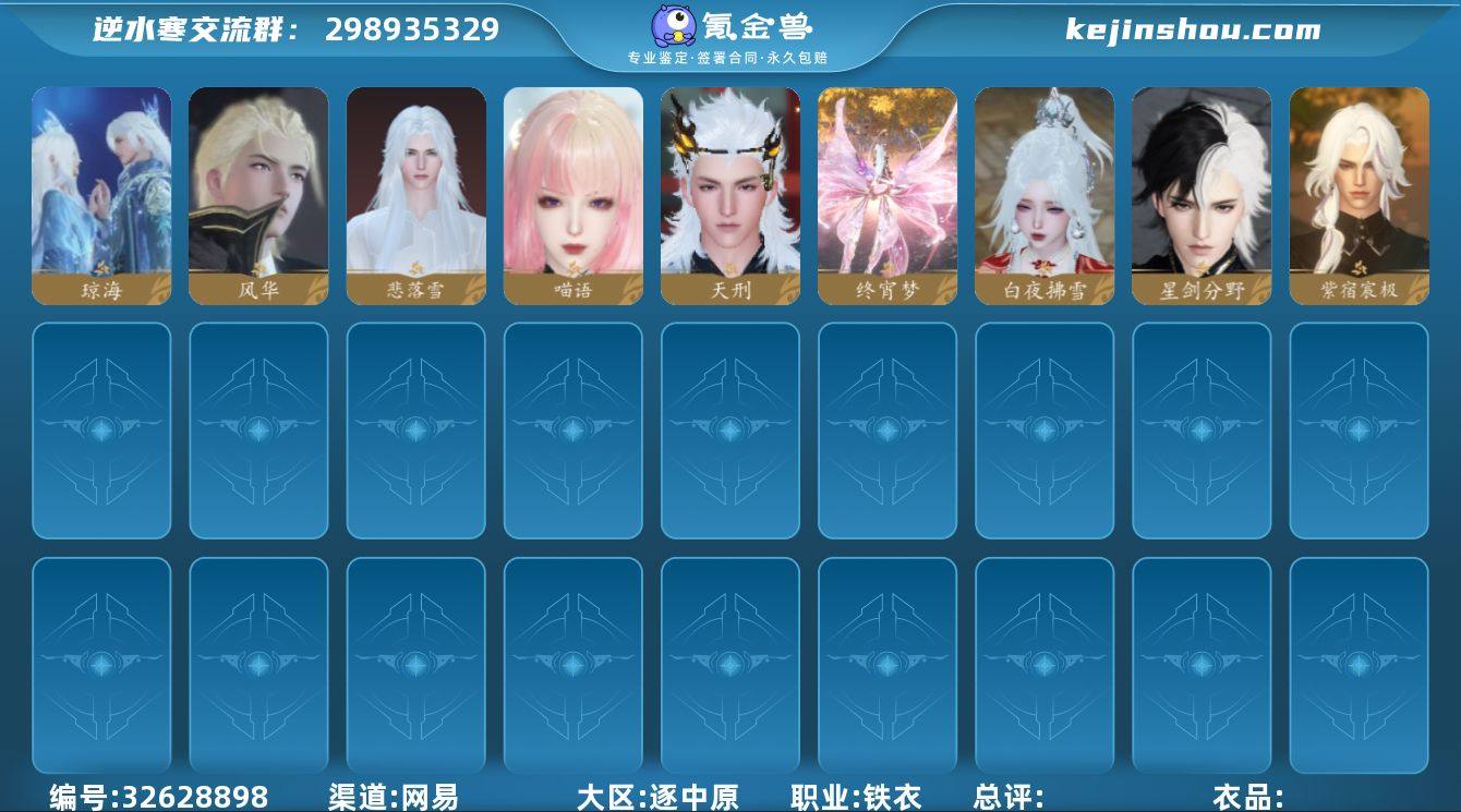 【区服】 九天揽月 【战力值】 191.64 【职业】 铁衣 【馆藏】 5级 【衣品值】 244825 【国色值】 72870 【已用天赏石】 18 【天霓染数量】 3 【充值称号】 凭栏听雨 【累计充值】 9462元 【天霓染】 黑魔蝶使*1, 狸奴颂锦*1, 凤吟振羽*1 【灵韵内功】 灭阵, 日月两仪, 沉渊, 荡剑扬波, 止水诀, 逢虚, 万化冥合, 熔甲, 断金戈, 汲川 【副本外观】 白夜拂雪*4, 紫宿宸极, 星剑分野, 芜心照雪, 重海遥思, 霜途无间, 飞焰流波 【天赏外观】 骁野, 风华, 绫月浪, 琼海, 悲落雪, 喵语, 天刑, 雷霆武器, 圣曜辉光 【天赏祥瑞】 终宵梦 【祥瑞坐骑】 呆宝, 露荷, 布丁, 风行·江湖景, 风行·世间情, 风行·万灯明, 云螭·金玉纳福, 云螭·庆舞迎春, 云螭·再浪一夏, 龙衔瑞焰, 甜点鼠鼠, 金冠鼠鼠, 碧茵海骐, 纵风甲车·赤, 粉黛娇, 幻琉晶, 狂霸天, 风行·谦谦有礼, 沉木行马, 星河转·银昼, 星河转·金夕, 星河转·赤夜, 骋风叱焰, 伯力, 咩郎, 瓜皮, 英杰, 墨流云·玄色, 墨流云·朱红, 墨流云·靛青, 奔虹赤, 灵音夜契, 星光闪球, 犬威哮月, 犬威哮月·沧, 犬威哮月·焰, 隐云涧, 西部驴仔, 玉霄飞练 【商城外观】 甜宙漫游, 夜雪闻梅, 狂纵驰野, 楚威傲世, 悠影掠风, 金缕漠歌, 夜雨倾澜, 夜锋漫...