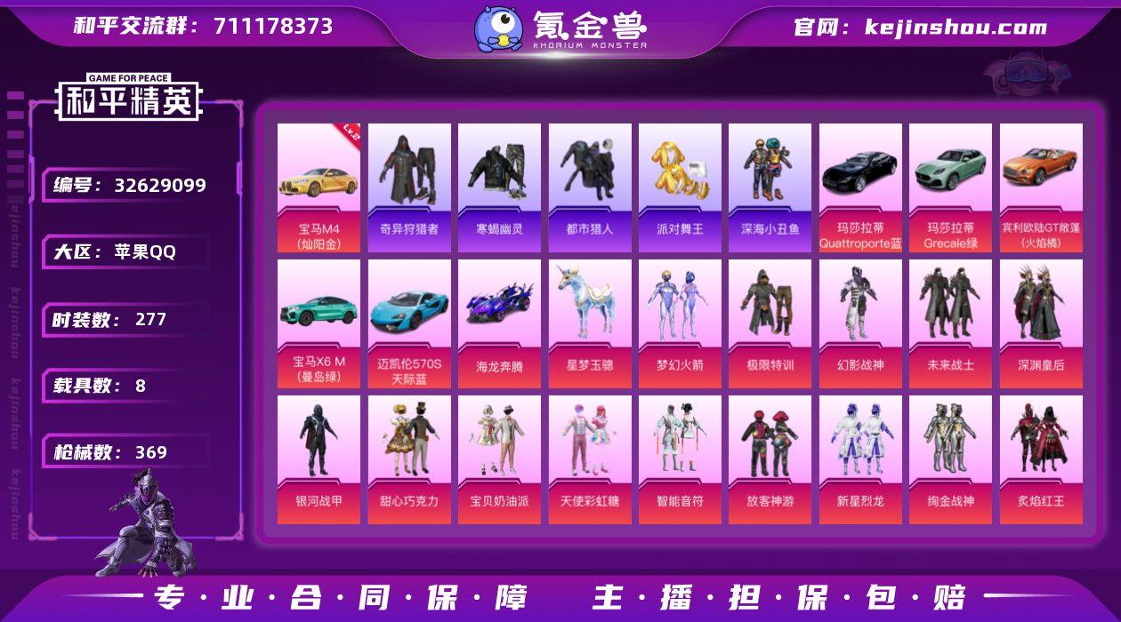 苹果【载具号 宝马M4(灿阳金)(二级)/无敌战神框/M416-心之恋语(一级)/M416-至情至圣(九级)/粉装-梦幻火箭/套装-寒蝎幽灵/套装-都市猎人/套装-派对舞王/套装-暗影哥特/粉装-甜心巧克力/粉装-放客神游/角色-零号机款机体服】 手Q-无敌战神框-30粉装-17特效枪-8载具-8粉色飞行器-141643热力值-17王牌印记-277套装-369枪皮 【红色载具】:宝马M4(灿阳金)(二级) 【热门品类】:粉装-梦幻火箭,套装-寒蝎幽灵,套装-浪漫天命,套装-都市猎人,套装-派对舞王,套装-深海小丑鱼,套装-奇异狩猎者,角色-军刀雅典娜,套装-金羽特工,套装-忍者信条,角色-2P战斗服款,套装-龟仙人,套装-暗影哥特,套装-粉红小猪 【粉色套装】:粉装-极限特训,粉装-幻影战神,粉装-未来战士,粉装-深渊皇后,粉装-银河战甲,粉装-甜心巧克力,粉装-宝贝奶油派,粉装-天使彩虹糖,粉装-梦幻火箭,粉装-智能音符,粉装-放客神游,粉装-新星烈龙,粉装-绚金战神,粉装-炙焰红王,粉装-骨龙祭渊,角色-零号机款机体服,粉装-精灵娃娃,粉装-橘柚倾心,粉装-赤焰黑爵,粉装-紫电风暴,粉装-星夜魔法师,角色-复仇流浪者,粉装-飒粉甜心,角色-小可学妹,粉装-萌物绒绒,粉装-炫光之旅,粉装-憨憨奶龙,...