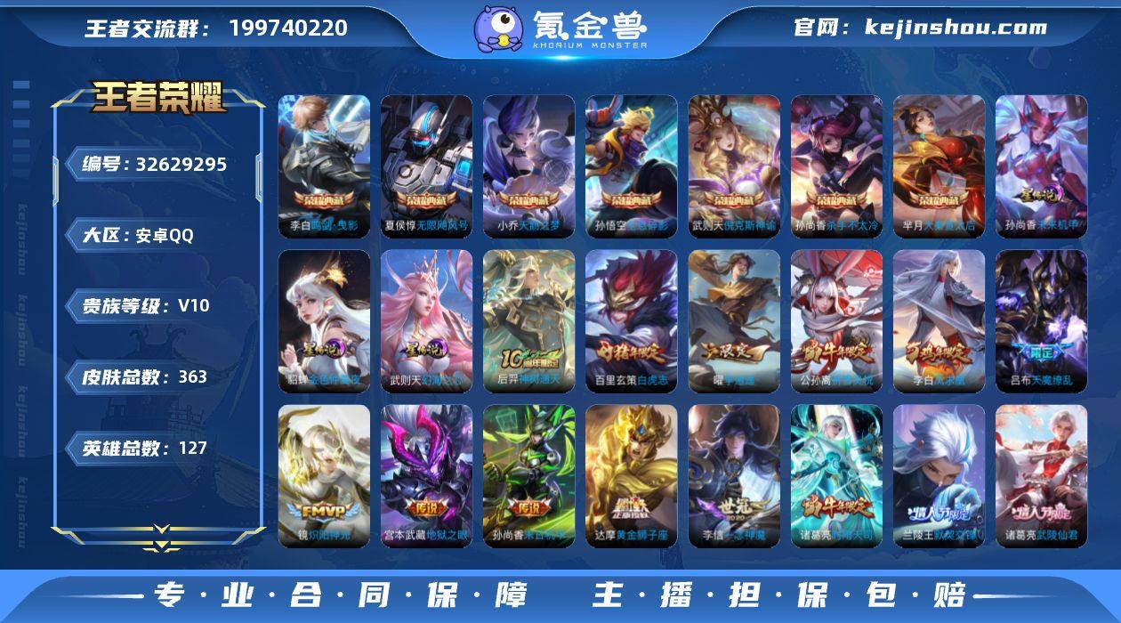 可换绑 【高性价比v10号·省7万战芈月·金标吕布虞姬大乔·8典藏含武则天·李逍遥·武圣·白虎志·凤求凰·天魔缭乱·神威·飞衡·神奇女侠·冰封战神·3星元传说·紫星币6500个·】6579星币 幸运值223 3按键,3星传说,294戳戳,18王者印记,满级铭文,可二次CD18762,安卓Q-V10-363皮肤-7典藏皮肤-1典藏英雄-33传说-115史诗【英雄全皮】:猪八戒全皮【荣耀典藏】:武则天英雄,孙悟空全息碎影,武则天倪克斯神谕,夏侯惇无限飓风号,小乔天鹅之梦,孙尚香杀手不太冷,芈月大秦宣太后,李白鸣剑曳影【星元皮肤】:貂蝉金色仲夏夜,武则天幻海之心,孙尚香未来机甲【传说皮肤】:后羿神树通天,艾琳觅芳踪,曜李逍遥 ,周瑜音你心动,小乔音你心动,李元芳飞鸢探春,兰陵王默契交锋,公孙离祈雪灵祝,诸葛亮时雨天司,镜炽阳神光,虞姬启明星使,孙悟空零号赤焰,关羽武圣,曜云鹰飞将,李信一念神魔,刘备时之恋人,貂蝉猫影幻舞,张良黄金白羊座,干将莫邪久胜战神,虞姬云霓雀翎,达摩黄金狮子座,百里玄策白虎志,花木兰冠军飞将,梦奇胖达荣荣,后羿黄金射手座,诸葛亮武陵仙君,貂蝉仲夏夜之梦,李白凤求凰,孙尚香末日机甲,宫本武藏地狱之眼,吕布天魔缭乱,武则天海洋之心,狄仁杰超...