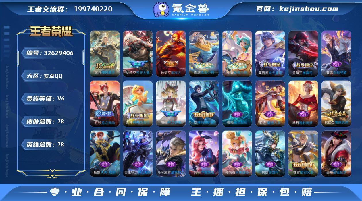 32922|【可实名】精品脱坑珍品多传说号 可二次低价出 安卓QQ 78皮 贵族6级 1珍品传说 3传说 24史诗【珍品传说】沧流箭【传说皮肤】神树通天,地狱火,齐天大圣【史诗皮肤】傩神司,线条小狗,光弋星穹,百相守梦,糖绘人间,箭羽风息,鸭鸭历险记,圣诞狂安卓QQ 78皮 贵族6级 1珍品传说 3传说 24史诗【珍品传说】沧流箭【传说皮肤】神树通天,地狱火,齐天大圣【史诗皮肤】傩神司,线条小狗,光弋星穹,百相守梦,糖绘人间,箭羽风息,鸭鸭历险记,圣诞狂欢,魅力维加斯,时之彼端,水果甜心,幽灵船长,天秀·启明,龙之律动,鹰眼统帅,魔术师,特工魅影,瑰影绮梦,圣诞恋歌,皇家上将,曙光守护者,节奏热浪,白龙吟,星界特工【勇者皮肤】荣光之誓,线条小狗,小满鸭,往忆晖光,逆浪荇歌,鹤鸣心笺,踏浪烽翎,苍云破阵,溯影追猎,极光幻客,命运加冕,克喵,班班快跑,死亡骑士,完美运算,野性能量,少女阿狸,时尚教父,万象初新,灵野札记,鸭鸭历险记,时空谍影,阴阳师,幻想奇妙夜,星际陆战队,百相守梦,兔女郎,掌控之力,白执事,太极少年,拳王,虚灵犬护,布丁狗之约,街头霸王,海滩派对【其他皮肤】修竹墨客,赤焰之缨,英喵野望,战争骑士,西部大镖客,海之征途,灼热之刃,范海辛,孤猎,创世神祝,街头旋风,异域舞娘,生化警戒,熊喵少...
