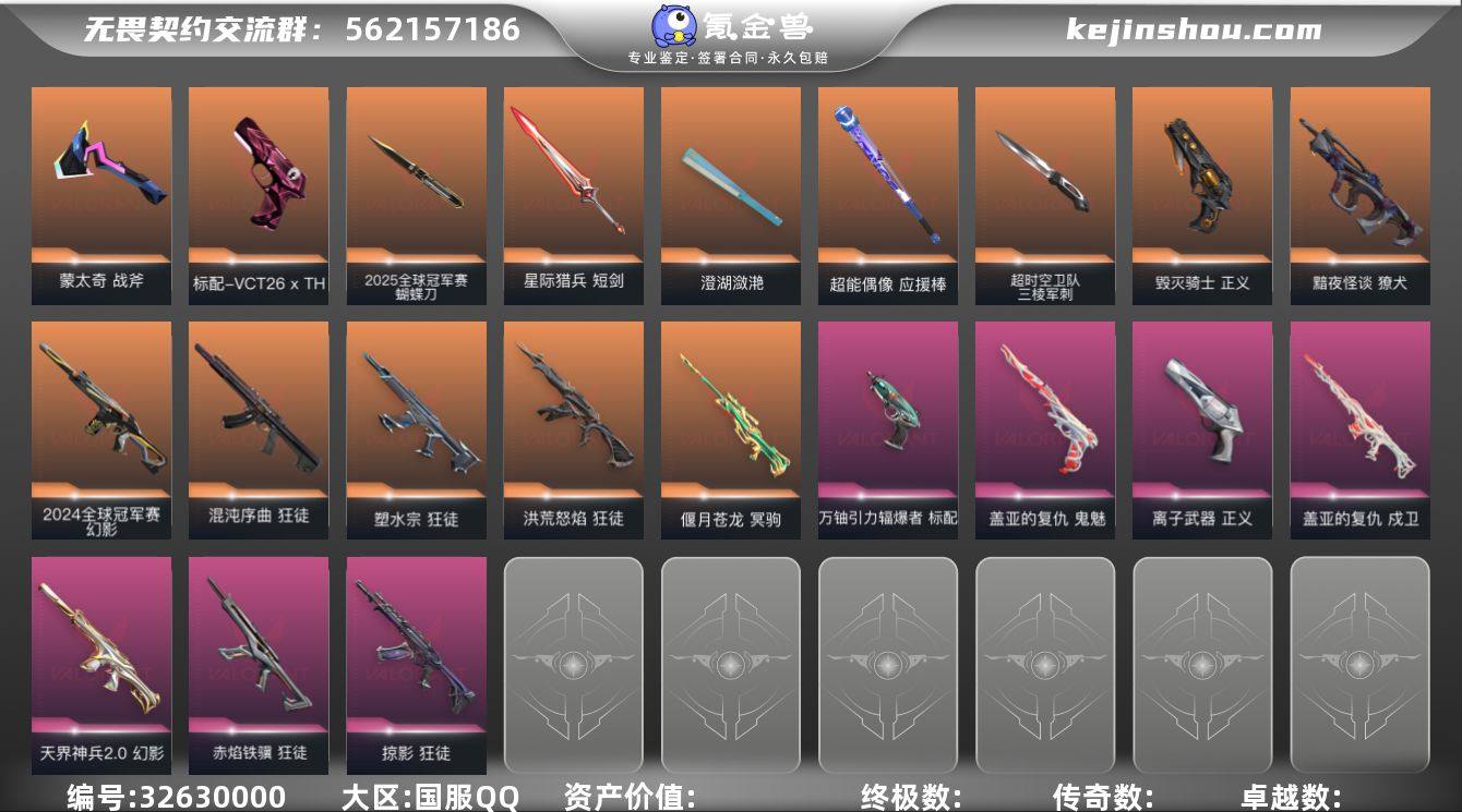 【无畏契约】等级:216,已用无畏点65590,已用源晶点1295,橙皮:幻影-2024全球冠军赛|近战-2024全球冠军赛 战刀|近战-RGX 11z Pro3.0 爪刀|近战-超限闪存 匕首|近战-澄湖潋滟|近战-超能偶像 应援棒|近战-威龙之刃|獠犬-黯夜怪谈|狂徒-塑水宗|狂徒-洪荒怒焰|狂徒-混沌序曲|冥驹-偃月苍龙|正义-毁灭骑士|近战-镭切|近战-源始幻刃|近战-超时空卫队 三棱军刺|近战-星际猎兵 短剑|狂徒-2025全球冠军赛|近战-2025全球冠军赛 蝴蝶刀|近战-流风回雪|莽侠-千灵华绽2.0|鬼魅-千灵华绽2.0|狂徒-千灵华绽2.0|战神-千灵华绽2.0|近战-蒙太奇 战斧|标配-VCT26 x TH|近战-悲悯之刃__紫皮:鬼魅-盖亚的复仇|幻影-天界神兵2.0|戍卫-盖亚的复仇|正义-离子武器|狂徒-掠影|标配-万铀引力辐爆者|狂徒-赤焰铁骥__段位:黄金__蓝皮:短炮-天才少女|鬼魅-星云暗涌|鬼魅-采蜜小蜂队|战神-采蜜小蜂队|獠犬-采蜜小蜂队|判官-采蜜小蜂队|骇灵-浮光跃金|标配-浮光跃金|戍卫-浮光跃金|战神-浮光跃金|蜂刺-聚合之力|幻影-聚合之力|狂怒-聚合之力|飞将-聚合之力|鬼魅-模拟赫兹|獠犬-模拟赫兹|冥驹-模拟赫兹|雄鹿-模拟赫兹|标配-阿特拉斯指挥部|狂怒-光环序列|戍卫-光环序列|冥驹-光环序列|战神-光环序列|狂徒-瑰梦...