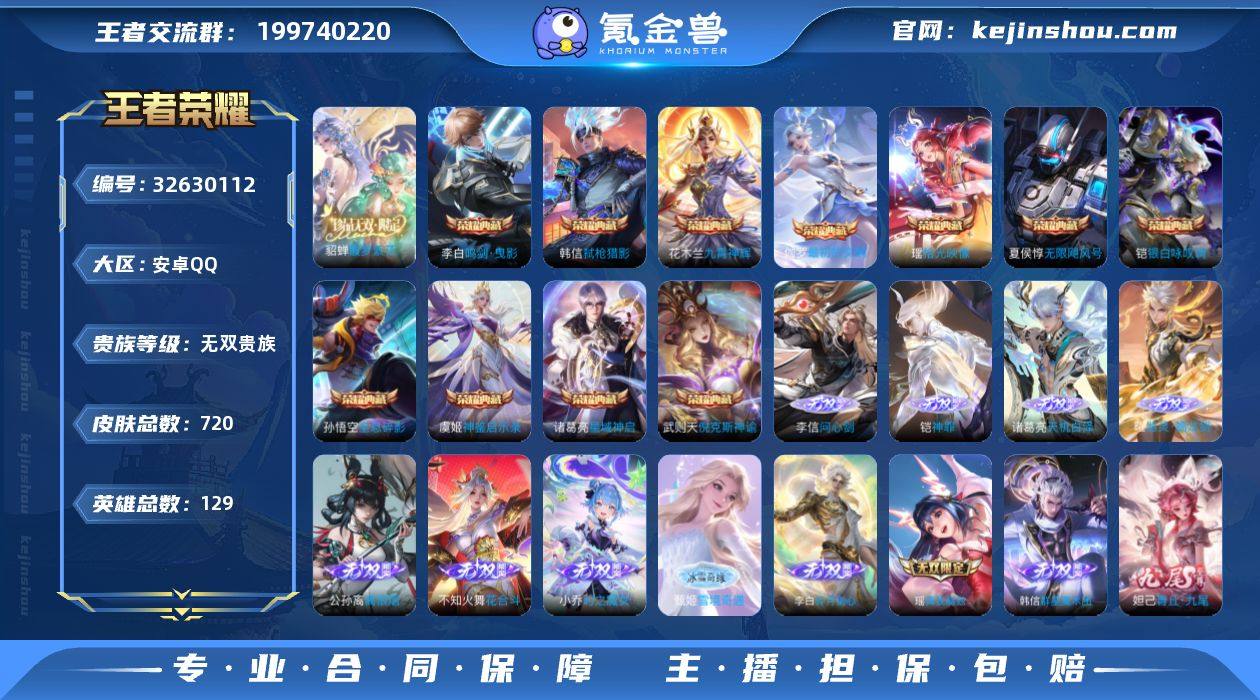 无双v10满英雄720皮,历史金标9700李白银标辅助中单,可二次实名,是本人