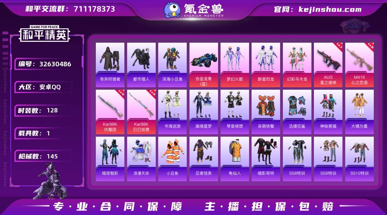 安卓【素材号 M416-心之恋语(六级)/粉装-梦幻火箭/套装-都市猎人/套装-暗影哥特/合金龙骨(蓝)】 手Q-3粉装-5特效枪-1载具-2粉色飞行器-49897热力值-2王牌印记-128套装-145枪皮 【热门品类】:粉装-梦幻火箭,套装-浪漫天命,套装-都市猎人,套装-深海小丑鱼,套装-小丑鱼,套装-奇异狩猎者,套装-忍者信条,套装-龟仙人,套装-暗影哥特 【粉色套装】:粉装-梦幻火箭,粉装-新星烈龙,粉装-幻彩马卡龙 【粉色枪皮等级】:M416-心之恋语(六级),AUG-星之彼岸(七级),Kar98K-伏魔团(四级),Kar98K-巳巳如意(四级),Mk14-福马献瑞(一级) 【粉色载具】:合金龙骨(蓝) 【粉色枪皮】:M416-心之恋语,AUG-星之彼岸,Kar98K-伏魔团,Kar98K-巳巳如意,Mk14-福马献瑞 【粉色飞行器】:炫彩糖果飞行器,花间之火飞行器 【粉色降落伞】:幻影战神降落伞,梦幻火箭降落伞,PEL轰鸣竞梦者降落伞,神秘黑猫降落伞,花间之火降落伞,银刃赛罗降落伞,香水柠檬降落伞,暗夜玫瑰降落伞,双重狂想降落伞,极意拳锋降落伞,炫彩糖果降落伞 【稀有套装】:套装-龟仙人,套装-雪国风尚,套装-炫彩糖果,套装-马上来财,套装-书海巡游,套装-画境星梦,套装-琴音绮想 【稀有枪皮】:AUG-冰晶雪宝...