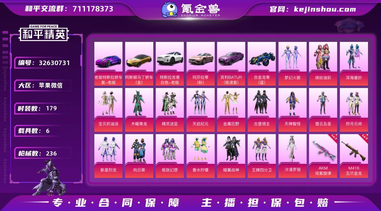 df苹果 微信【精品素材号,身法号,男神公主混搭号,载具号,多满级枪,新101,猪妹面具,宝贝奶油派,潮萌小黄鸭,小白龙,s1特训,金属狂野,满级五爪金龙,满级心之恋语,】-19粉装-8特效枪-6载具-6粉色飞行器-102903热力值-18王牌印记-179套装-236枪皮 【热门品类】:粉装-梦幻火箭,粉装-缤纷油彩,套装-SS1特训,套装-龟仙人,套装-潮萌小黄鸭,套装-浪漫波比,套装-粉红小猪,熔岩游骑兵连帽夹克 【粉色套装】:粉装-深海曼妙,粉装-宝贝奶油派,粉装-木曜青龙,粉装-精灵迷巫,粉装-梦幻火箭,粉装-天启纪元,粉装-金属狂野,粉装-缤纷油彩,粉装-古堡领主,粉装-天禅智恒,粉装-彗云及圣,粉装-狩月元帅,粉装-新星烈龙,粉装-向日葵,粉装-极致幻想,粉装-香水柠檬,粉装-暗翼战神,粉装-王牌四分卫,角色-冷漠罗丽 【粉色枪皮等级】:AKM-炫紫旋律(七级),SCAR-L-锦绣绵绵(五级),M416-五爪金龙(七级),M416-心之恋语(七级),GROZA-香水柠檬(七级),M762-甜蜜誓约(七级),Kar98K-伏魔团(五级),Kar98K-巳巳如意(五级) 【粉色载具】:特斯拉Model 3(奇幻紫),特斯拉Model X(珍珠白),阿斯顿马丁DBS(金),玛莎拉蒂Ghibli(粉),宾利BATUR(极速紫),合金龙骨...