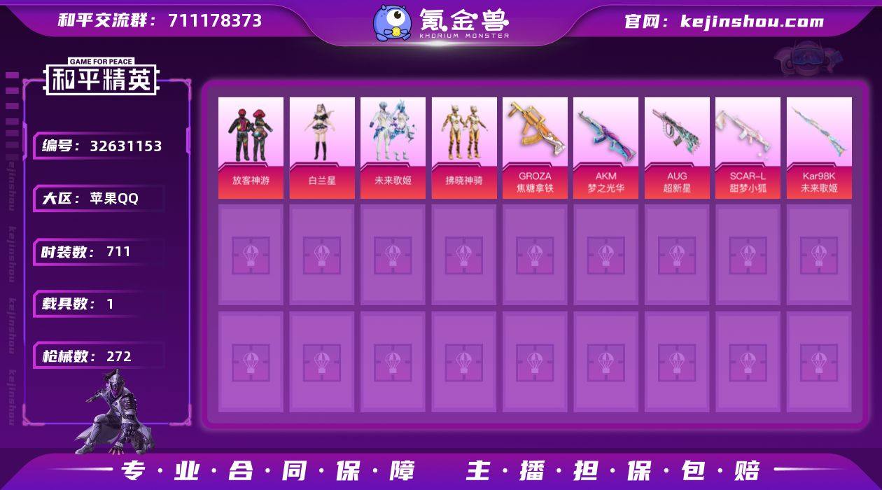 【稀有枪皮】AUG-许七安,Kar98K-巳巳如意,MK14-福马献瑞,Vector-最终圣卫者,DP-28-豹影疾电,M249-霁蓝缠春,M416墨龙九天,AKM梦之光华,GROZA焦糖拿铁,SCAR-L甜梦小狐,Kar98K未来歌姬,AUG超新星