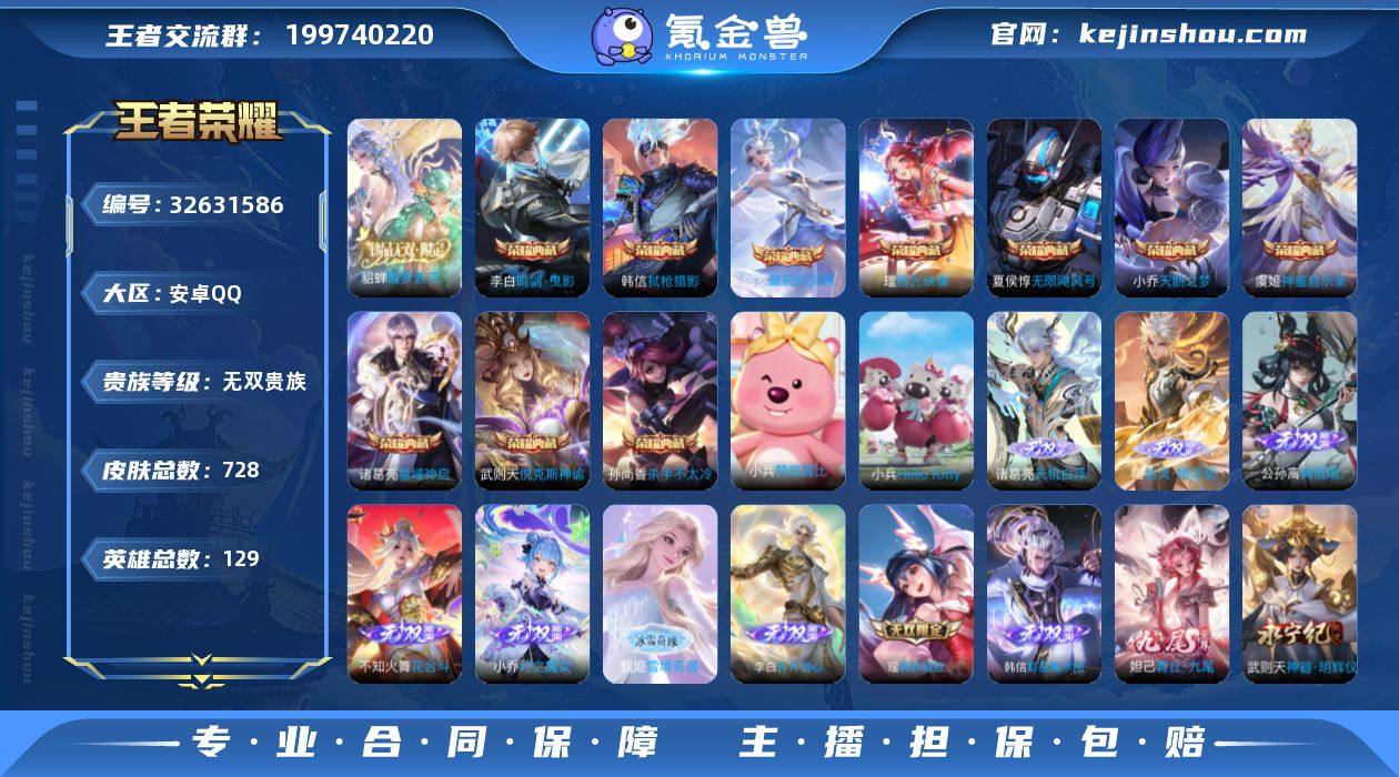 0·728皮·11w流光积分·12典藏·1珍品无双·14无双·10珍品·8星传说·135传说·5天幕·79按键·342个性戳戳·金标妲己·全皮妲己·全皮小乔·全皮大乔·全皮公孙离·全皮吕布·全皮李白·全皮韩信·全皮瑶+紫瑶·貂蝉馥梦繁花·Hello Kitty小兵·江户川柯南·怪盗基德·太华红枫·棉花糖聚会天幕·妄想时刻天幕·天机无算天幕·纸笺情愫天幕·可二次】w21072-安卓Q-129英雄-728皮肤-25王者印记-300铭文-贵族积分55w【贵族11】【12典藏·1珍品无双·14无双·10珍品·8星传说·135传说·5天幕·79按键·342个性戳戳】【因赛季更新游戏段付以上号为准!】 【英雄全皮】:廉颇全皮,小乔全皮,妲己全皮,刘禅全皮,吕布全皮,周瑜全皮,元歌全皮,夏侯惇全皮,典韦全皮,宫本武藏全皮,李白全皮,狄仁杰全皮,达摩全皮,武则天全皮,司马懿全皮,露娜全皮,姜子牙全皮,韩信全皮,孙权全皮,王昭君全皮,艾琳全皮,张良全皮,不知火舞全皮,朵莉亚全皮,娜可露露全皮,橘右京全皮,牛魔全皮,刘备全皮,张飞全皮,杨玉环全皮,苍全皮,杨戬全皮,哪吒全皮,蔡文姬全皮,太乙真人全皮,鬼谷子全皮,大乔全皮,黄忠全皮,百里玄策全皮,百里守约全皮,弈星全皮,梦奇全皮,公孙离全皮,沈梦溪全皮,明世隐全皮,狂铁全皮,...
