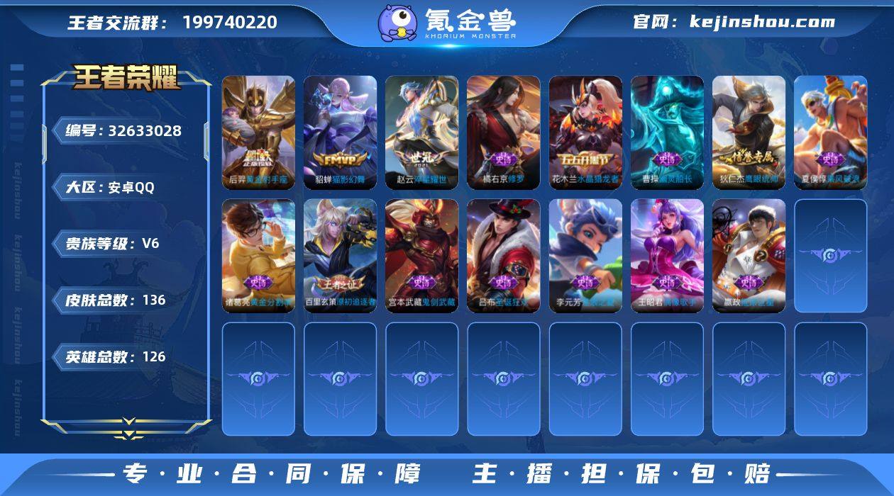 V6 3传说 126英雄 136皮肤 可修改实名 男号