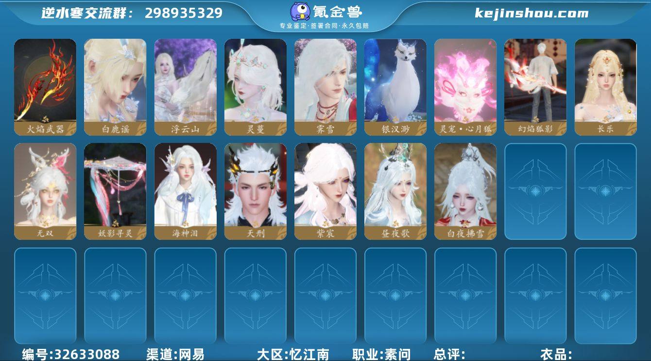 【区服】 姑苏绮罗 【充值称号】 把酒临风 【已用天赏石】 22 【天霓染数量】 2 【天霓染】 古道西风*1, 陆离*1 【天赏发型】 白鹿谣, 海神泪, 长乐, 无双, 昼夜歌, 紫宸, 天刑, 霁雪, 灵蔓, 浮云山 【天赏祥瑞】 银汉渺 【天赏外观】 火焰武器, 水武器, 幻焰狐影, 妖影寻灵·狐舞青丘 【天赏灵宠】 灵宠·心月狐 【副本外观】 白夜拂雪*1 【配饰】 樱琼云散, 犯逆鳞, 烟波渺 【商城外观】 珊枝琢浪, 朝歌旧梦, 司玄镇天, 玲珑灼火, 诗剑纵歌, 千星咏叹, 灵珠海羽, 闻鹤九皋, 跃动心芒, 琼林萧瑟, 灼金喵影, 福禄金刚, 狼原灰骑, 晴蓝逸思, 暮夜陷落, 雕骨琢心, 晴岸涛吟, 玄冥道骨, 云汉逢夕, 不负卿愿, 修罗焚天, 斗墨金枢, 白露惑心, 玄喵夜行, 鳞纱幻海, 鳞骨逢幽, 乌夜禁巡, 星宫遐音, 贪狼摄星, 青林雀舞, 开阳执戈, 紫微御宵, 蓬海沧歌, 兰亭觞咏, 衣香鬓影, 混天焚莲, 逆鳞浊日, 火鸾鸿衣, 瀚渊龙炎, 曦照东晖, 金祷颂晖, 玉泽凌烟, 金粉绮梦, 烽火浮生, 赤狐魅语, 圣月沉夜, 醉墨狂歌, 天纵恒尊, 林泽仙踪, 广寒遗客, 瀚雪冰封, 苍龙浮山, 鱼龙鳞潜, 白灵幻尘, 灵鹿苍风, 法度禅心, 玄证禅心, 舞乐浮烬, 墨隐千秋, 枫华九霄, 燕回南山, 御宇临渊, 雾非雾, 迢迢霄汉, 白...