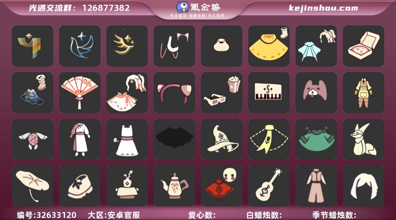 账号类型: 邮箱账号 季节已毕业: 彩染季,青鸟季,迁徙季 完成地图: 雨林,霞谷 礼包: 蝙蝠套,巫师,围巾,星球斗,小狐狸,荷叶伞,运动鞋,茶桌,茶壶,福娃,吉他,奔跑裤子,奔跑发型,彩虹帽,雪花球,橘子,贝壳,南瓜,猫背饰,星月头饰,彩虹耳钉,彩虹耳机,雪怪斗,奥利奥,海螺,暗彩装扮,小提琴,透明蛛丝,飞蛾套,雪人鞋,新年耳钉,创始人,海蓝波浪发型,日光耳环,向日葵连衣裙,龙鳞束身长袍,海龟斗篷,园丁装扮,衔福献瑞礼包,献瑞折扇礼包,小狗周年发饰,立式钢琴礼包,潮汐套装礼包,粽子发饰礼包,必胜客联动分享披萨背饰礼包,青衫落拓礼包,周年影院套餐礼包,小黄鸭雨衣套装礼包,小黄鸭发饰礼包,皮皮猫套装礼包 裤子: 武士裤,白棉裤,搓澡巾 项链: 围巾 发型: 正太,樱花,虚荣,猫耳 头饰: 花环 斗篷: 白金,白鸟斗,玫瑰褶边斗篷 配饰: 吉他,大铃铛乐器
