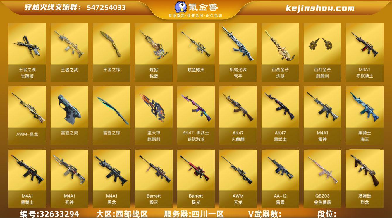 T194109(爆破生化挑战都能玩--6烈龙+毁灭三件套+挑战武器带金狐套)cf西部/四川1区/64v/6烈龙+死亡之眼/毁灭+cfs2018+音效卡/黑骑士+音效卡/qbz金色蔷薇/cop雷霆/aa12雷霆/2修罗/火麒麟/雷神/3王者/2炫金/封神放逐者III+试炼破坏者III+神圣爆裂者III+金狐套/葵/炫/2音效卡/多皮