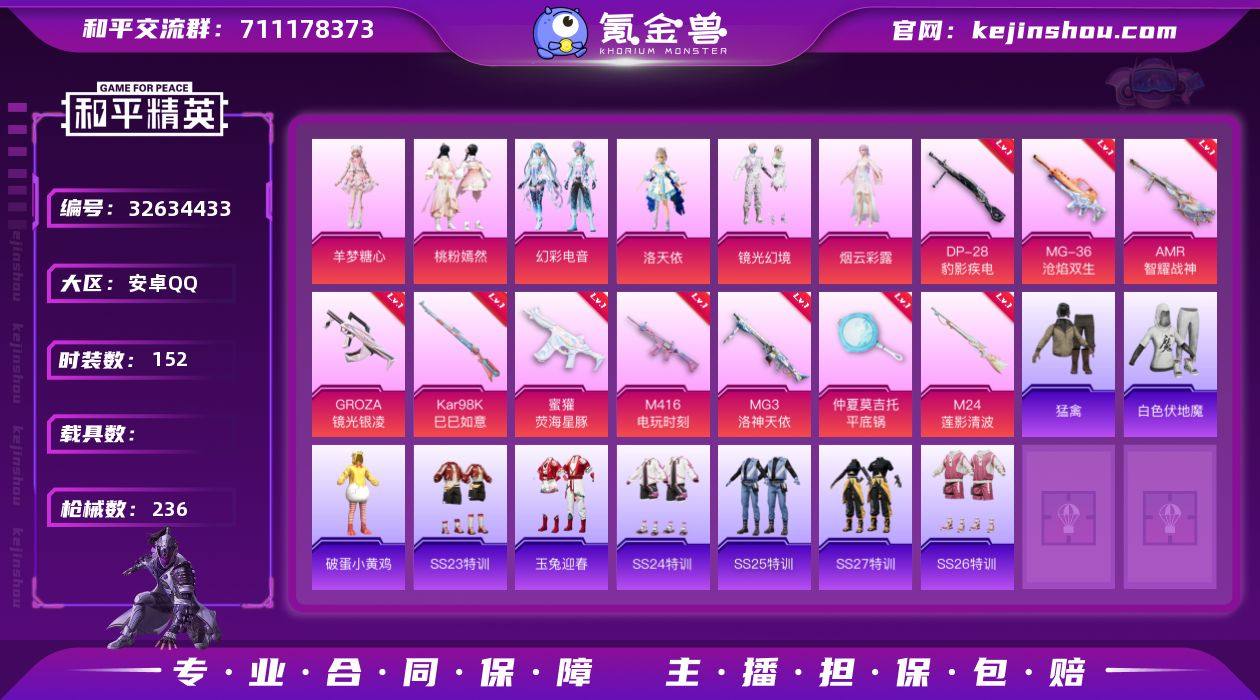 8粉装 13粉枪 152套装 236枪皮 19热门 洛天依 吉莉礼服 幻羽潜行 阳光火鸡 炫蓝之夏 萌黄之夏 黄色名流 猛禽 甜蜜告白 天籁歌者 电音精灵 潮流炫酷 柠萌假日 王牌教练 龟仙人 无暇誓言 空岛之星 贝斯之夜 贵族骑装 惊鸿侠骨 竞技名士 锦衣飞扬 深蓝色名流 云霞荷露 晨曦薄雾 酒红色名流 灼焰舞者 龙的传人 玉兔迎春 快闪甜心 特战装甲 森林游猎者 春光漫游 湖蓝色名流 光之冒险 绯格组合 完美偶像 街头潮人 特殊使命 旭日情侣 缤纷果语 幻世战舞者 人气偶像 镜光幻境 热血青春 酷潮明星 桃粉嫣然 角色-烟云彩露 幻彩电音 角色-羊梦糖心 S686-生命誓言 S1897-炫彩节奏 Mini14-耀粉歌者 汤姆逊-炫彩节奏 DBS-焰鹰斗篷 M24-莲影清波(4级) DP-28-焰鹰斗篷 M416-红色方程式 汤姆逊-耀粉歌者 S686-红色方程式 S12K-破晓战魂 GROZA-治愈之星 AUG-耀粉歌者 M24-仲夏莫吉托 M249-糯团青竹 AC-VAL-乌木金纹 QBZ-洛神天依 蜜獾-天降萌叽 MG3-惊鸿侠骨 MG3-第五大道 Mk14-治愈之星 M24-乌木金纹 AC-VAL-快闪甜心 QBZ-彩虹符号 莫辛纳甘-乌木金纹 AMR-乌木金纹 S12K-夜灯 M200-惊鸿侠骨 UZI-啾咪啾咪 MK20-H-快闪甜心 UMP45-夜灯 Mini14-涂山之恋 爆炸猎弓-惊鸿侠骨 SLR-彩虹符号 AWM-焰鹰...