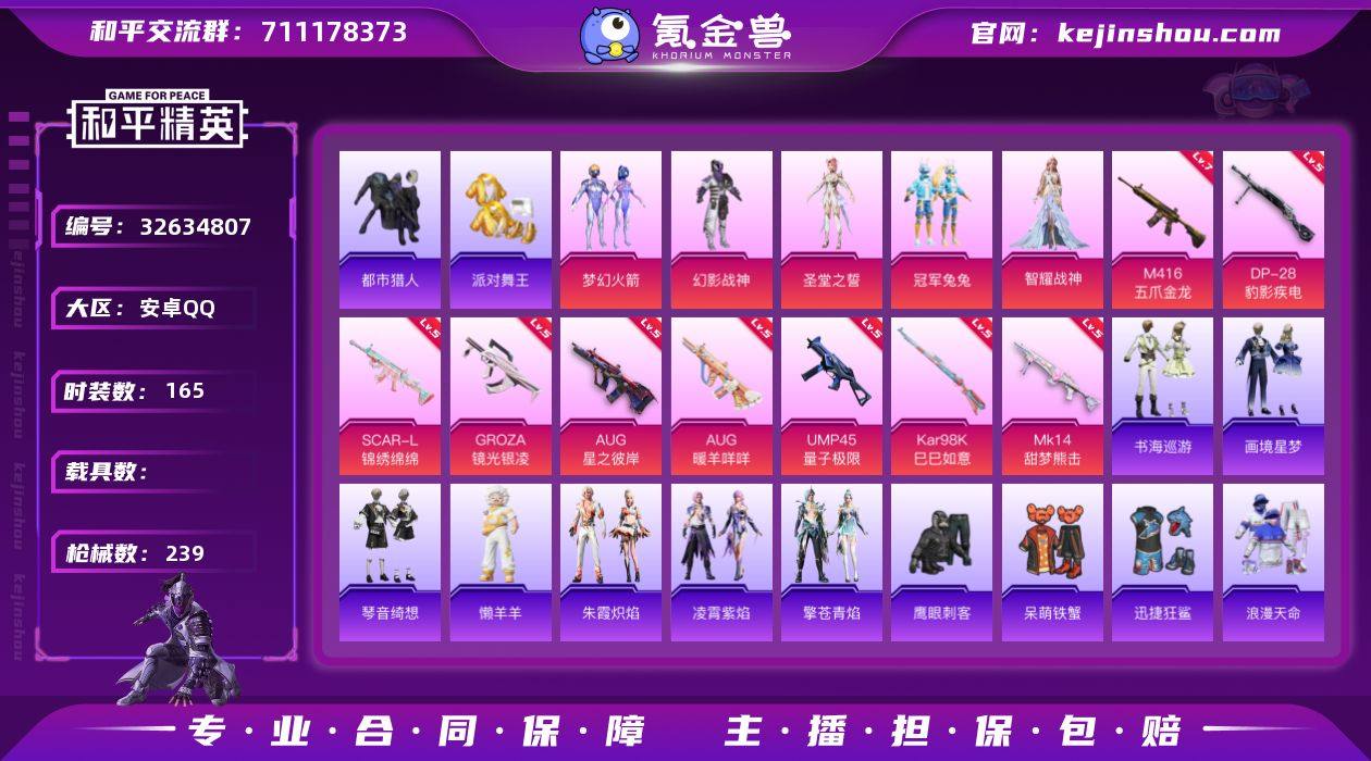 YZJ16166-可二次-安卓Q-4稀有5粉装11特效枪7热门165套装239枪皮 70980热力值 极品身法素材号 地铁满天赋 四词条头盔 四词条M338 310扭蛋碎片 新火箭少女 幻影战神 圣堂之誓 冠军兔兔 都市 金鞋 天命 鲨鱼服 懒羊羊 菠萝头 满级M4五爪 5级AUG星之彼岸 满级AUG暖羊 13印记 历史绝世王牌15星 【4稀有】 都市猎人 浪漫天命 派对舞王 派对舞王(金靴子) 【5粉装】 圣堂之誓 梦幻火箭 冠军兔兔 幻影战神 智耀战神 【11特效枪】 M416-五爪金龙 (7级) SCAR-L-锦绣绵绵 (5级) Kar98K-巳巳如意 (5级) DP-28-豹影疾电 (5级) AUG-暖羊咩咩 (5级) UMP45-量子极限 (5级) Mk14-甜梦熊击 (5级) GROZA-镜光银凌 (5级) AUG-星之彼岸 (5级) Mk14-福马献瑞 (5级) ACE32-萌骑漫游 (5级) 【7热门】 龟仙人 呆萌铁蟹 鹰眼刺客 迅捷狂鲨 粉红小猪 漫步者 弄潮海豚 【5飞行器】 梦幻火箭飞行器 星之彼岸飞行器 镜光幻境飞行翼 萌物绒绒飞行器 纯梦嫁纱飞行翼 【4头盔】 甜心宝贝头盔 幻影战神头盔 深海小丑鱼头盔 金羽特工头盔 【1背包】 梦幻火箭背包 营地ID:933080242