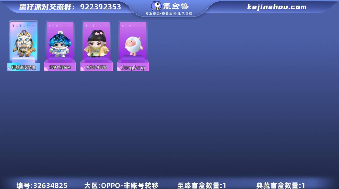 2至臻1羊47紫东东羊神裁者安努斯大魔术师师梨嘉茨木童子 【XTD418】 ✅渠道:oppo✅登陆方式:手机号 ✅历史潮流:79464✅氪条:10520 ✅至臻数量:2✅ 紫色套装数量:47 ✅载具:无 ✅至臻套装:大魔术师梨嘉,神裁者安努斯 ✅紫色套装:淘气丸子,松饼小红帽,dongdong羊,仔仔熊,失心熊,莓莓甜心兔,元气丸子,古风小生汪伦,沉梦女孩朵朵,魔术助手kk,马戏乐手咻咻,企鹅心心,北极熊安安,茨木童子 ✅背饰:魔术旋旋杖路,易斯西洋棋,神谕日轮,垂耳兔背包,天马法杖 ✅热门动作:甩手舞双人牵手地狱之手烤火
