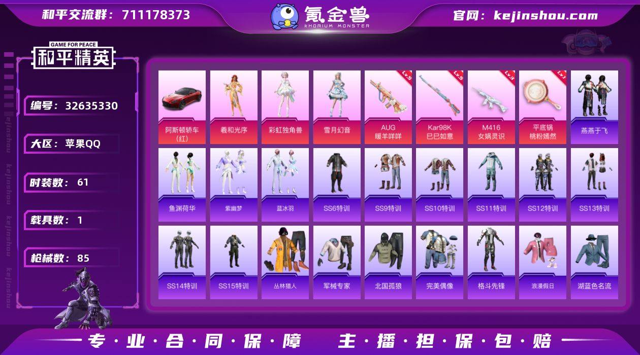 【930384】苹果 【公主号 彩虹独角兽/雪月幻音/M416-女娲灵识(三级)/阿斯顿马丁DBS(红)】手Q-3粉装-4特效枪-1载具-2粉色飞行器-28952热力值-1王牌印记-61套装-85枪皮 【粉色套装】:角色-羲和光序,角色-彩虹独角兽,粉装-雪月幻音 【粉色枪皮等级】:M416-女娲灵识(三级),AUG-暖羊咩咩(五级),Kar98K-巳巳如意(五级),平底锅-桃粉嫣然(一级) 【粉色载具】:阿斯顿马丁DBS(红) 【粉色枪皮】:M416-女娲灵识,AUG-暖羊咩咩,Kar98K-巳巳如意,平底锅-桃粉嫣然 【粉色飞行器】:古堡领主飞行器,彩虹独角兽飞行器 【粉色降落伞】:深海曼妙降落伞,梦幻火箭降落伞,神秘黑猫降落伞,古堡领主降落伞,繁花小夜曲降落伞,锦绣火鲤降落伞,香水柠檬降落伞,幻影飞狐降落伞,彩虹独角兽降落伞,雪月幻音降落伞,圣域龙灵降落伞 【稀有套装】:套装-燕燕于飞,套装-鱼渊荷华,套装-紫幽梦,套装-蓝冰羽 【稀有枪皮】:AKM-夜灯,AKM-灼热熔岩,AKM-破晓战魂,AKM-萌趣颜团子,M16A4-夜灯,SCAR-L-炫彩节奏,SCAR-L-红色方程式,M416-蓝色火焰,GROZA-马卡龙,QBZ-原初圣火,QBZ-彩虹符号,M762-牛气冲天,M762-绯红前夜,M762-镭射皇者,G36C-不夜海上花,G36C-桃粉嫣然,AC-VAL...