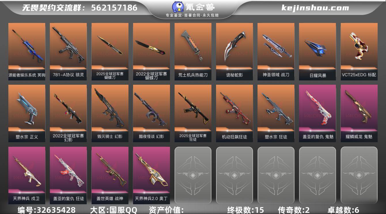 【931314】22 25套 qyz8808 【近战武器】:近战武器-2025全球冠军赛 蝴蝶刀,近战武器-2022全球冠军赛 蝴蝶刀,近战武器-紫金爪刀,近战武器-荒土机兵 热能刀,近战武器-诡秘蛇影 军刀,近战武器-神圣领域 战刀,近战武器-日耀风暴 遗器 【狂徒】:狂徒-2025全球冠军赛,狂徒-机动狂飙,狂徒-塑水宗,狂徒-盖亚的复仇,狂徒-荒土机兵,狂徒-诡秘蛇影 【幻影】:幻影-2022全球冠军赛,幻影-黯夜怪谈,幻影-毁灭骑士,幻影-神圣领域,幻影-纳米打击,幻影-末日之翼 【戍卫】:戍卫-天界神兵,戍卫-逆冲蛮牛,戍卫-月球哨兵,戍卫-折光棱晶 【獠犬】:獠犬-神圣领域,獠犬-逆冲蛮牛 【冥驹】:冥驹-源能者娱乐系统,冥驹-荒土机兵,冥驹-星云暗涌 【飞将】:飞将-末日之翼 【莽侠】:莽侠-诡秘蛇影,莽侠-月球哨兵 【战神】:战神-盖世英雄,战神-神圣领域 【奥丁】:奥丁-天界神兵//2.0,奥丁-纳米打击,奥丁-末日之翼 【判官】:判官-诡秘蛇影,判官-纳米打击x 【雄鹿】:雄鹿-逆冲蛮牛,雄鹿-月球哨兵 【骇灵】:骇灵-781-A协议,骇灵-荒土机兵,骇灵-星云暗涌 【蜂刺】:蜂刺-星云暗涌,蜂刺-折光棱晶 【标配】:标配-荒土机兵,标配-折光棱晶 【VCT手枪】:标配-VCT25 x E...