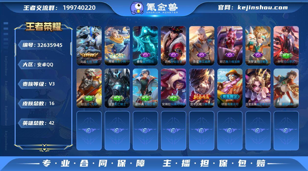 可换绑 【特价小号出售·马超无双飞将·奕星滕王阁序·无二次包过】 1王者印记 没有五级铭文 不可二次包过KK10180安卓Q-V3-16皮肤-1传说-5史诗【英雄全皮】:孙权全皮【传说皮肤】:马超无双飞将【限定皮肤】:项羽海滩派对【战令限定】:周瑜线条小狗【史诗皮肤】:周瑜线条小狗,弈星滕王阁序,沈梦溪月团寄思,曹操幽灵船长,吕布圣诞狂欢,妲己魅力维加斯【其他皮肤】:孙权径山谋武,赵怀真太极少年,宫本武藏万象初新,亚瑟死亡骑士,安琪拉玩偶对对碰,赵云忍炎影,项羽海滩派对,暃碧珀绯影,百里玄策威尼斯狂欢