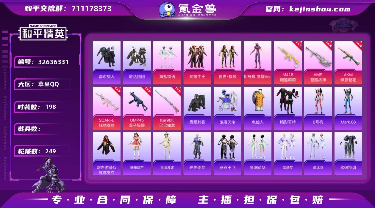 苹果【素材号 SCAR-L-锦绣绵绵(五级)/M416-暖熊萌萌(七级)/套装-都市猎人/角色-初号机 觉醒Ver./套装-暗影哥特/蓝螳螂/熔岩游骑兵连帽夹克/百万伏特背包(1级)】 手Q-5粉装-8特效枪-0载具-1粉色飞行器-74416热力值-11王牌印记-198套装-249枪皮 【热门品类】:套装-浪漫天命,套装-都市猎人,套装-胖达团团,套装-龟仙人,套装-暗影哥特,角色-8号机,角色-Mark.06,熔岩游骑兵连帽夹克 【粉色套装】:粉装-海盐物语,粉装-炙焰牛王,套装-创世·救赎,角色-初号机 觉醒Ver.,角色-鸢尾珑雾 【粉色枪皮等级】:AKM-绿萝繁花(五级),SCAR-L-锦绣绵绵(五级),M416-暖熊萌萌(七级),UMP45-量子极限(五级),Kar98K-巳巳如意(五级),Mk14-福马献瑞(四级),AMR-智耀战神(六级),AA12-G-萌骑幻想(三级) 【粉色枪皮】:AKM-绿萝繁花,SCAR-L-锦绣绵绵,M416-暖熊萌萌,UMP45-量子极限,Kar98K-巳巳如意,Mk14-福马献瑞,AMR-智耀战神,AA12-G-萌骑幻想 【粉色飞行器】:花傲天飞行器 【粉色降落伞】:神秘黑猫降落伞,甜蜜誓约降落伞,洛神天依降落伞,环太平洋降落伞,音爆索尼克降落伞,闲梦青缨降落伞,江南烟雨降落伞,墨龙九天降落伞,幻影飞狐降落伞,桃粉嫣然降落伞 【稀有套装】...