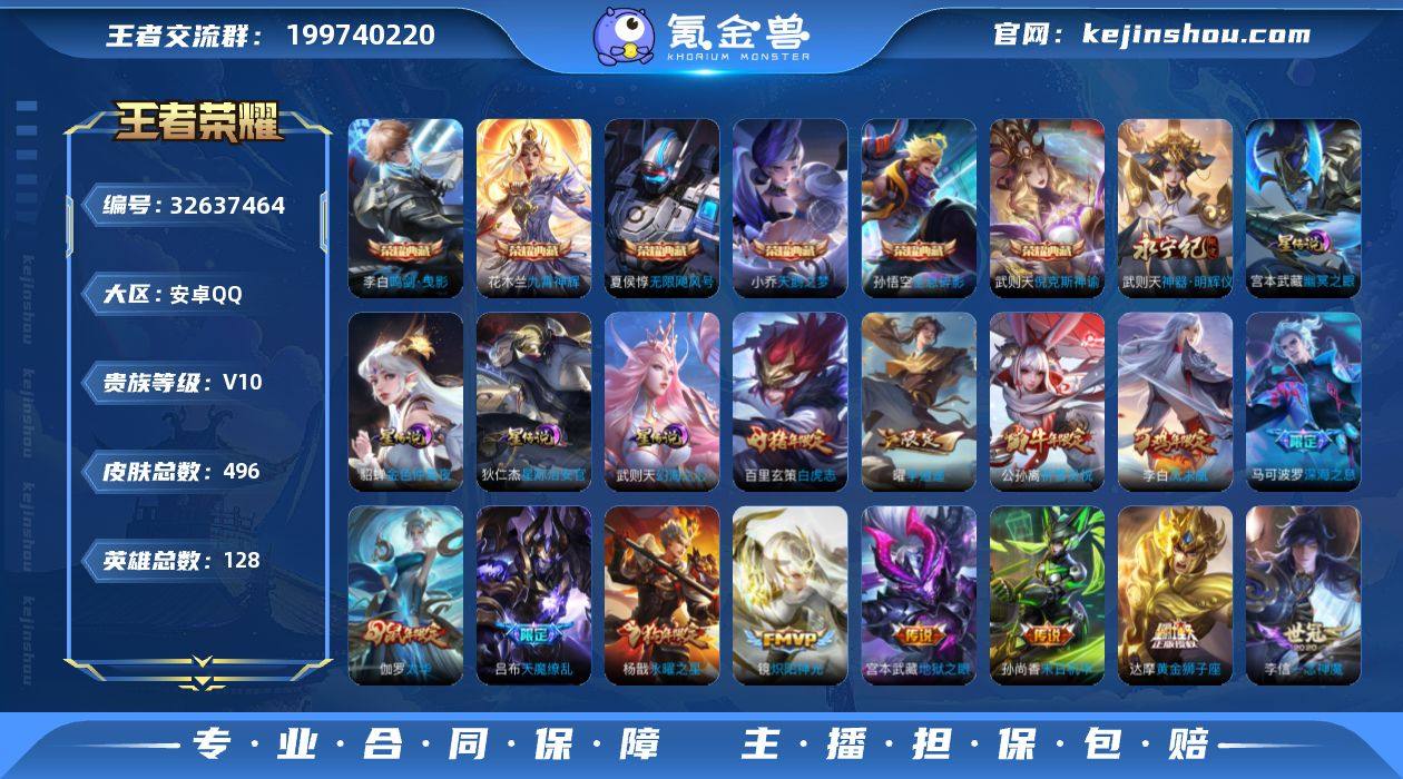 H-LR23945 安卓QQ V10 496皮 7典藏1无双61传说193限定 4星元 27按键 3天幕 巅峰1255 中路44段 发育路31段 全能高手 金标嬴政/武则天/女娲 147幸运值 2140星币 339英雄碎片 28印记 营地号:425168483【荣耀典藏】九霄神辉,全息碎影,鸣剑·曳影,武则天,倪克斯神谕,天鹅之梦,无限飓风号, 【星元皮肤】金色仲夏夜,幻海之心,幽冥之眼,星际治安官, 【热门限定】凤求凰,至尊宝,白虎志,青龙志,朱雀志,玄武志,神威,虎魄,龙胆,烈魂,武圣,李逍遥,冰锋战神,天魔缭乱,白鹤梁神女,影龙天霄,如梦令男,异界灵契,如梦令女,零号·赤焰,深海之息,永曜之星,武陵仙君,时雨天司,御风骁将,祈雪灵祝,奔雷神使,纯白花嫁,真爱至上,傲雪梅枪,天狼狩猎者,天狼绘梦者,天狼运算者,天狼溯光者,天狼征服者,寅虎·瑞焰,寅虎·心曲,寅虎·展翼,默契交锋男,默契交锋女,逐梦之影,逐梦之星,逐梦之翼,逐梦之音,逐梦之光,白晶晶,引擎之心,前尘镜,淬星耀世,枫霜尽,时之彼端,时之奇旅,蜜橘之夏,岱宗,幽恒,太华,飞衡,玄嵩,神奇女侠,冰霜恋舞曲,霸王别姬男,霸王别姬女,一生所爱,大圣娶亲,魔法小厨娘,暗影游猎,云端筑梦师,热情桑巴,凤凰于飞,补天,绯月行,星穹之声,时之奇旅,神器·万象笔,神器·狴犴令,匿光侦查者,启明星使,唐三藏,...
