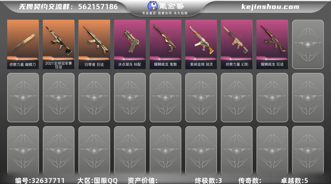 【939362】【英雄】:炼狱,维斯,暮蝶,壹决,捷风,雷兹,幽影,不死鸟,贤者,猎枭,零,芮娜,尚勃勒,霓虹,斯凯,夜露,K/O,盖可,钢锁 【近战武器】:近战武器-侦察力量 蝴蝶刀 【狂徒】:狂徒-2021全球冠军赛,狂徒-归零者,狂徒-耀鳞威龙,狂徒-钢轨卫士 【幻影】:幻影-侦察力量,幻影-战术小伙伴 【戍卫】:戍卫-钢轨卫士,戍卫-珍珠棘贝 【獠犬】:獠犬-战术小伙伴 【冥驹】:冥驹-复古浪潮 【飞将】:飞将-光导纤维 【莽侠】:莽侠-深海水族 【战神】:战神-深海水族 【奥丁】:奥丁-战术小伙伴 【雄鹿】:雄鹿-复古浪潮 【骇灵】:骇灵-紫阙金琅,骇灵-珍珠棘贝,骇灵-光导纤维 【蜂刺】:蜂刺-深海水族,蜂刺-战术小伙伴 【标配】:标配-冰点凝冻,标配-光导纤维 【鬼魅】:鬼魅-耀鳞威龙 【狂怒】:狂怒-钢轨卫士,狂怒-珍珠棘贝 【短炮】:短炮-钢轨卫士,短炮-深海水族 【卡面】:《双城之战》拥抱 卡面,欢迎来到底城 卡面,南瓜盛典 卡面,VCT CN首冠 卡面,修车达人 卡面,热舞环节 卡面,正义的化身 卡面,时间到 卡面,最高舞台 卡面,超能偶像 卡面,声感陷阱设计图 卡面,红鳞松叶 卡面,梦幻奶茶 卡面,零点嗅探设计图 卡面,夜班 卡面,瓦娃脸雪...