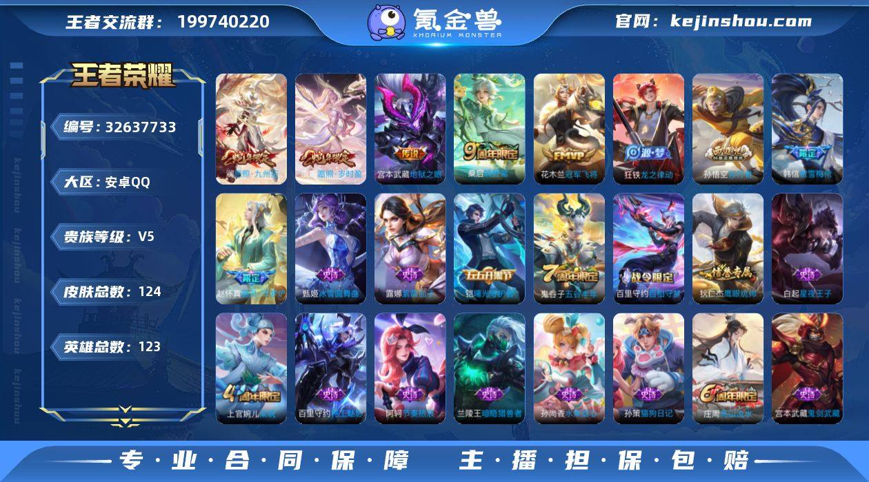 W13559 可立即换绑无需挂单养号 铭文满级 传说5 按键4 夺宝146 安卓Q-V5-尊贵铂金III段位-123英雄-124皮肤-5传说-28史诗 【英雄全皮】:影全皮 【传说皮肤】:澜愿照九州拓,虞姬愿照岁时盈,桑启鸣野蒿,花木兰冠军飞将,宫本武藏地狱之眼 【限定皮肤】:姜子牙天穹之誓,狄仁杰阴阳师,赵云皇家上将,庄周高山流水,高渐离玩趣恶龙,达摩沙漠行僧,项羽海滩派对,程咬金演武夺筹,韩信傲雪梅枪,兰陵王金庭之子,孙悟空孙行者,李元芳云中旅人,钟馗驱傩正仪,鬼谷子五谷丰年,苏烈千军破阵,沈梦溪大漠名商,裴擒虎擒涛扼浪,上官婉儿梁祝,鲁班大师探海日志,桑启海盐诗旅,艾琳女武神,张良古海寻踪,鬼谷子天穹祈灯,沈梦溪龙舞盛年,刘邦剑破天穹,周瑜熔金海岸 【赛季限定】:达摩沙漠行僧,程咬金演武夺筹,兰陵王金庭之子,张良古海寻踪,李元芳云中旅人,钟馗驱傩正仪,苏烈千军破阵,沈梦溪大漠名商,裴擒虎擒涛扼浪,鲁班大师探海日志,桑启海盐诗旅,鬼谷子天穹祈灯,刘邦剑破天穹,姜子牙天穹之誓 【史诗皮肤】:露娜紫霞仙子,赵云皇家上将,貂蝉圣诞恋歌,甄姬冰雪圆舞曲,宫本武藏鬼剑武藏,孙尚香水果甜心,妲己魅力维加斯,墨子金属风暴,刘邦德古...
