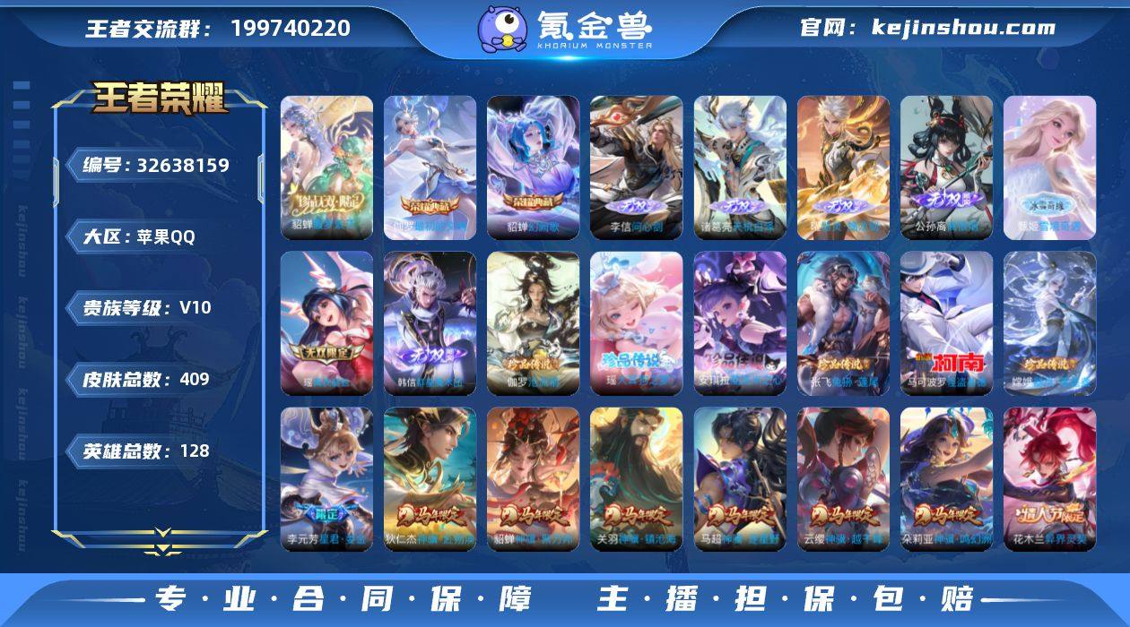 无二次-苹果Q女神号-V10-最强王者段位-128英雄-409皮肤-2典藏皮肤-1珍品无双-7无双-6珍品传说-48传说-121史诗HZ263235 【英雄全皮】:孙权全皮,艾琳全皮,鬼谷子全皮,公孙离全皮,敖隐全皮,蒙恬全皮,盘古全皮,阿古朵全皮,桑启全皮,戈娅全皮,空空儿全皮,少司缘全皮 【荣耀典藏】:貂蝉幻阙歌,伽罗最初的交响 【珍品无双】:貂蝉馥梦繁花 【无双皮肤】:李信问心剑,诸葛亮天机白泽,曜器灵螭龙剑,甄姬雪境奇遇,公孙离离恨烟,韩信群星魔术团,瑶真我赫兹 【珍品传说】:伽罗沧流箭,安琪拉酷洛米之心,瑶大耳狗之梦,张飞兔狲蓬尾,嫦娥器灵落星盏,马可波罗怪盗基德 【传说皮肤】:云缨神骥越千峰,关羽神骥镇沧海,朵莉亚神骥鸣幻洲,狄仁杰神骥赴朔漠,貂蝉神骥聚万邦,马超神骥逐星野,李元芳星君娄金,花木兰异界灵契,王昭君长夜焕生,后羿神树通天,干将莫邪千山共赴,公孙离云诺千山,司空震愿照山河定,女娲愿照千秋盛,妲己愿照众生和,澜愿照九州拓,蔡文姬愿照福禄聚,虞姬愿照岁时盈,云缨幻光神枪,桑启鸣野蒿,亚连落雪白狼,艾琳觅芳踪,甄姬至美化雀舞,大乔时之奇旅,鲁班七号时之奇旅,马可波罗妄想实况,东皇太一灼幽烈阳,公孙离记忆之芯,干...